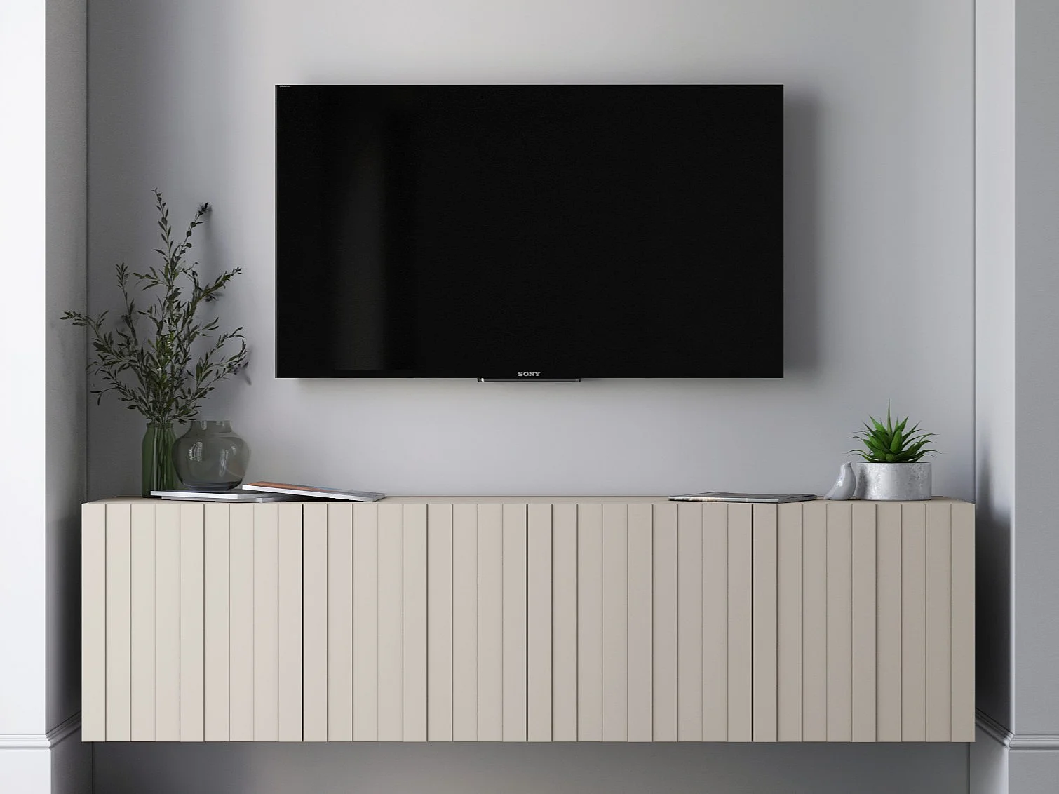 Meuble TV avec 4 portes - Corps Cachemire mat, façades rainurées Cachemire mat - 150 cm