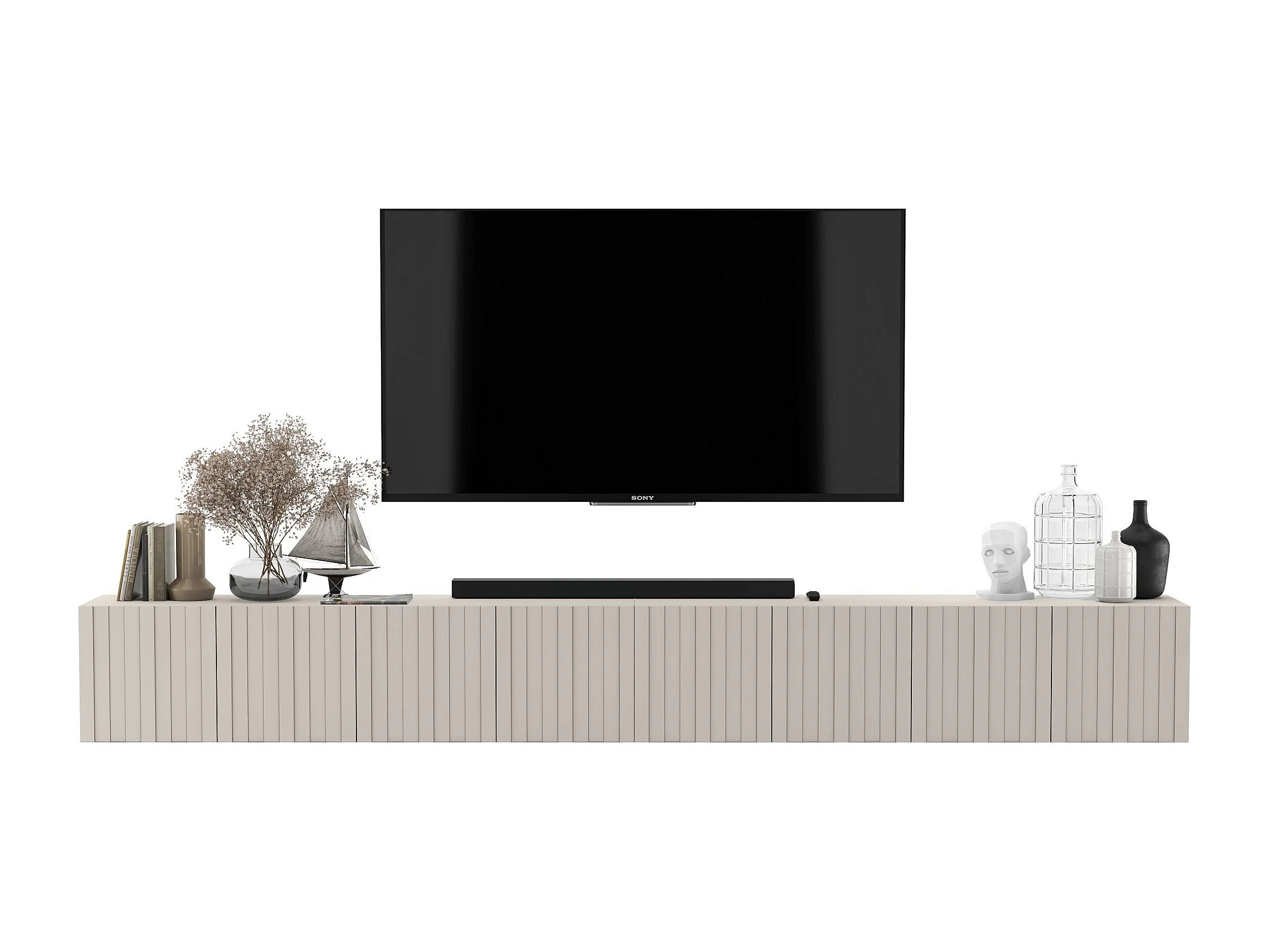 Meuble TV avec 8 portes - Corps Cachemire mat, façades rainurées Cachemire mat - 300 cm