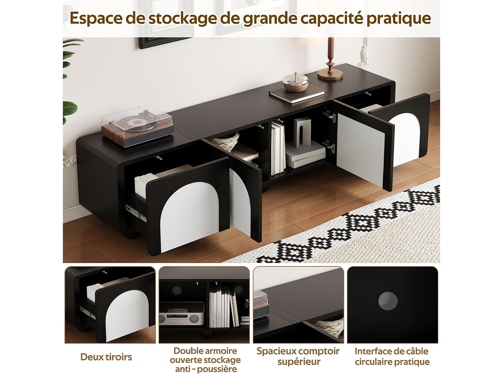 Meuble TV - avec deux tiroirs et deux portes - 180 x 38 x 45 cm