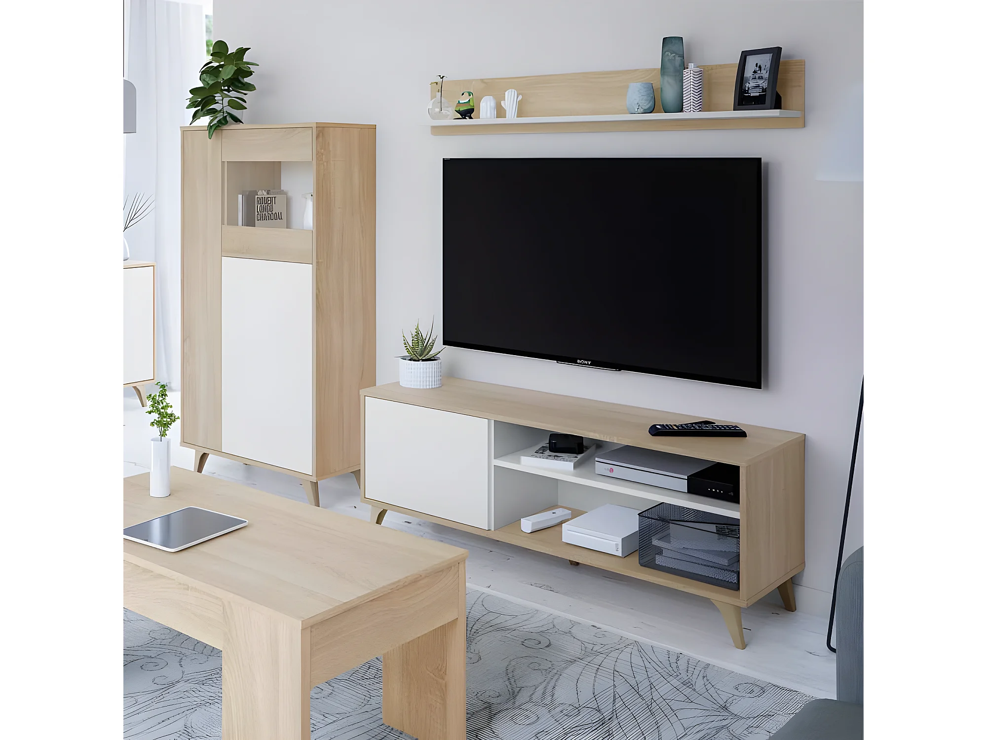 Meuble TV avec étagère Blanc/Chêne - SAG - L 135 x l 40 x H 50 cm