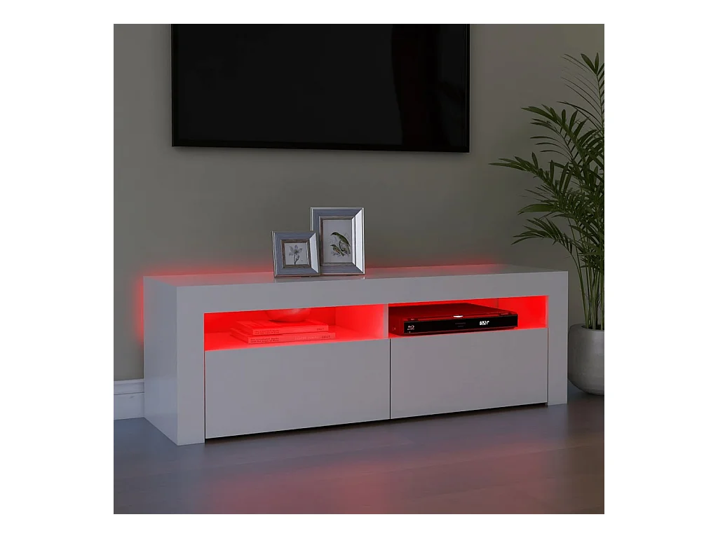 Meuble TV avec lumières LED blanc brillant 120x35x40 cm