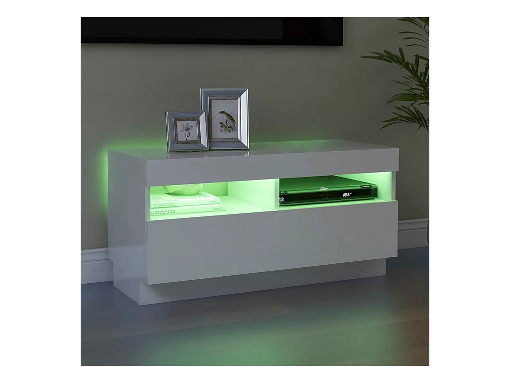 Meuble TV avec lumières LED blanc brillant 80x35x40 cm