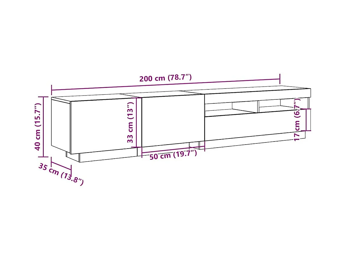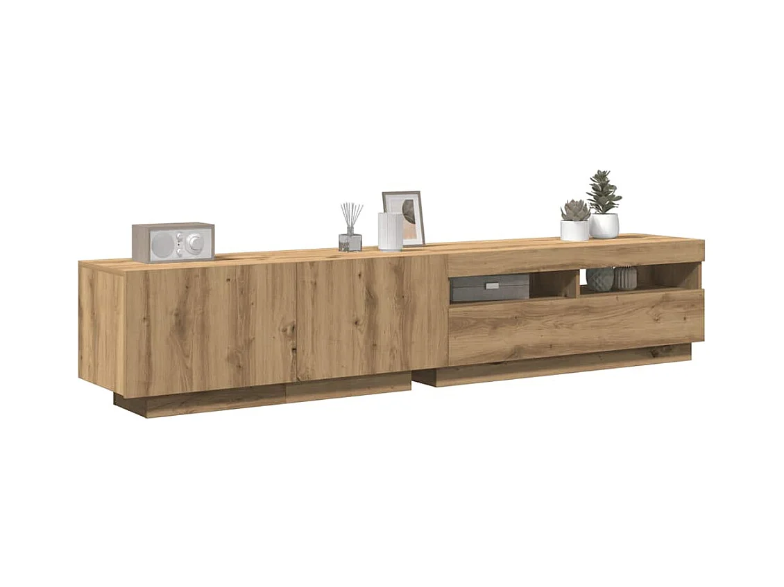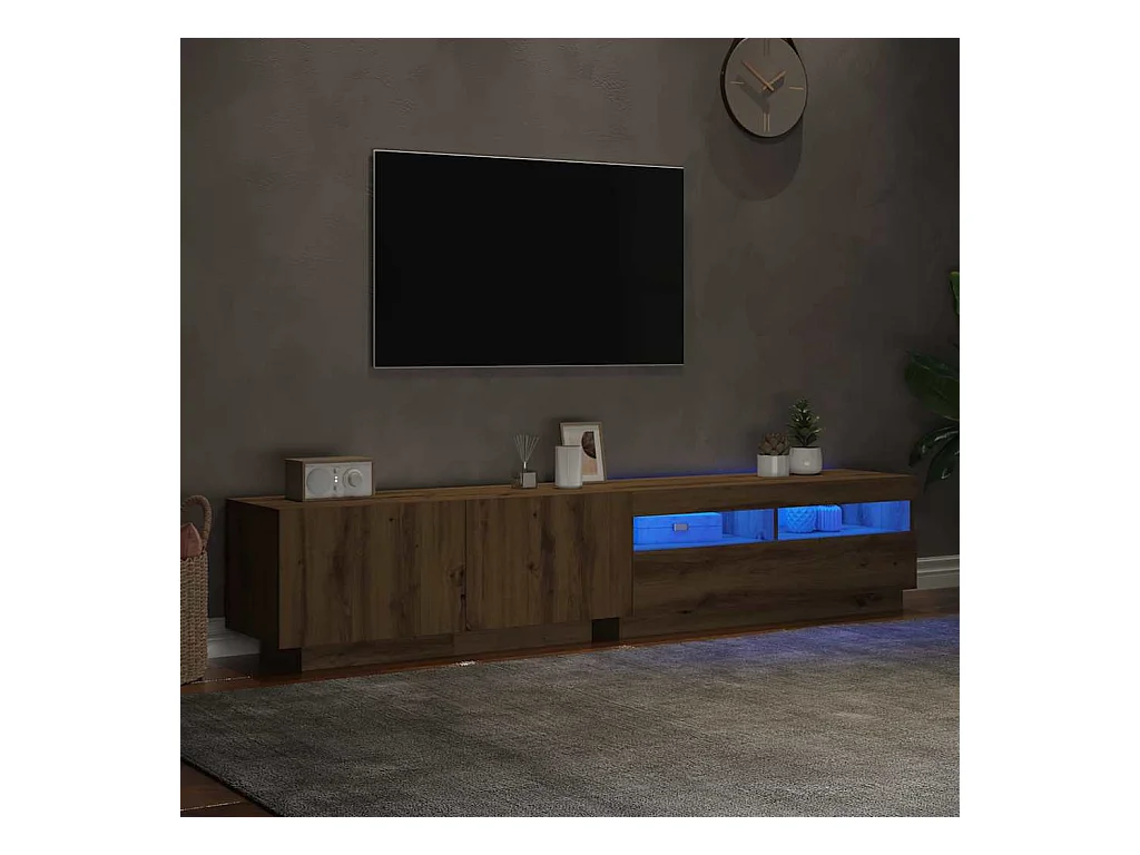 Meuble TV avec lumières LED chêne artisanal bois d'ingénierie