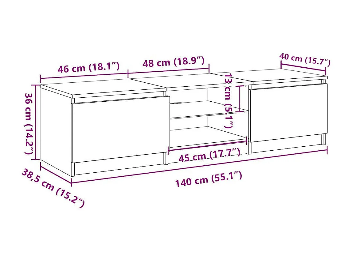 Meuble TV avec lumières LED gris béton 140x40x36 cm