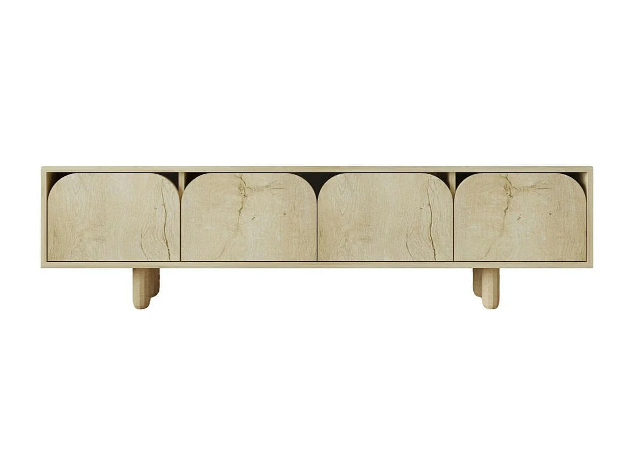 Meuble TV avec rangement, 4 portes courbes effet bois VAREN
