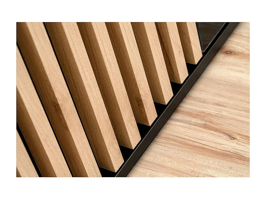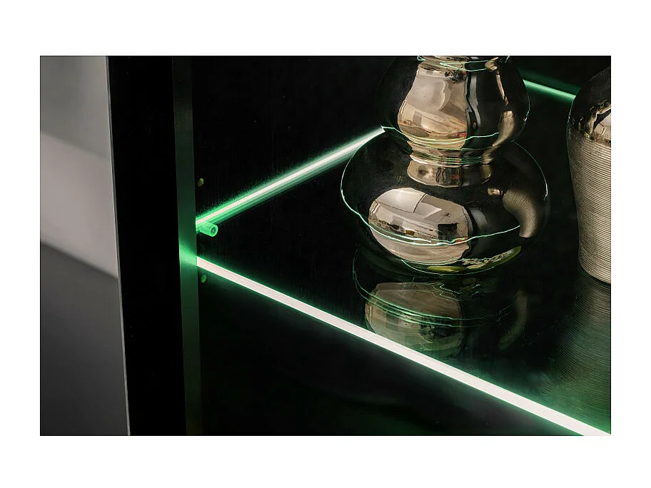 Meuble TV avec vitre en verre "Cameron" - Noir/Beige - L 160 x H 42 x P 45 cm