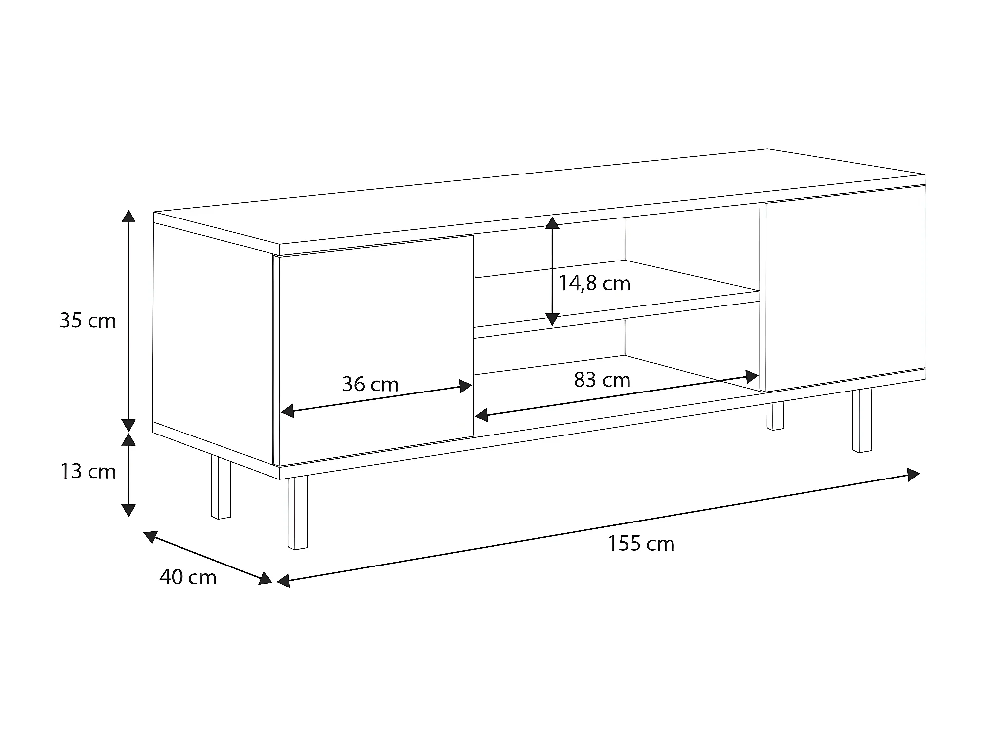 Meuble TV Aylana 155 cm blanc avec pieds noirs