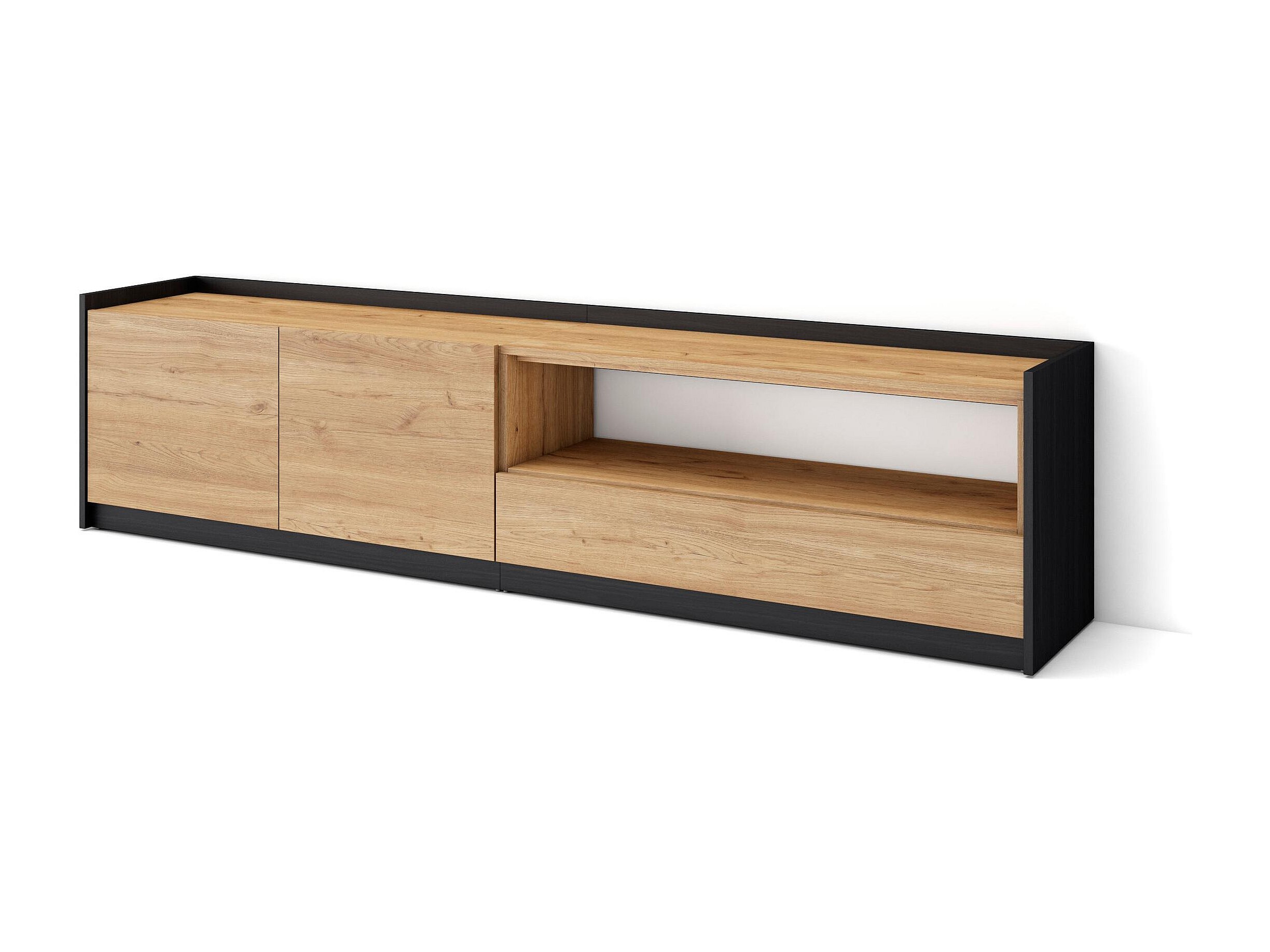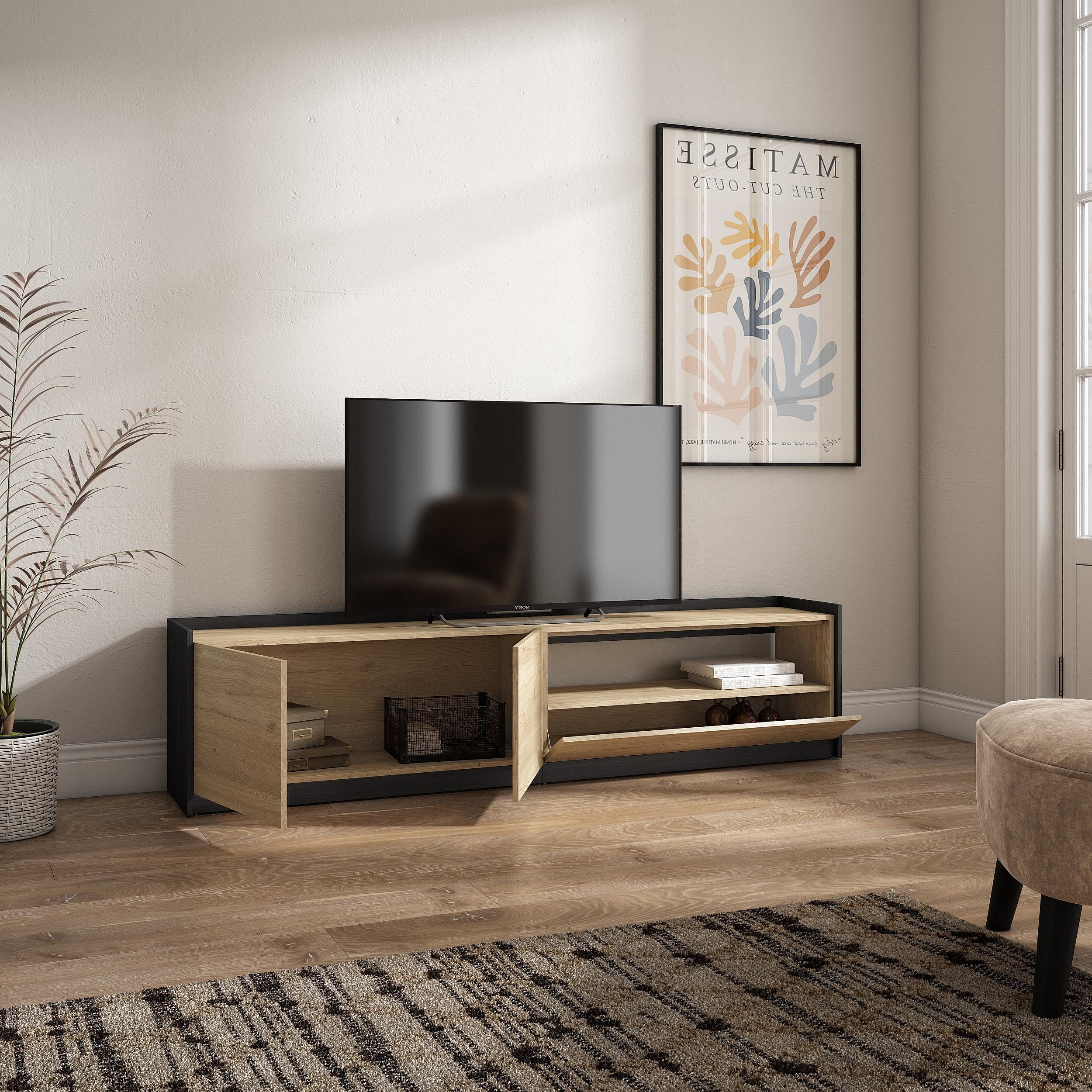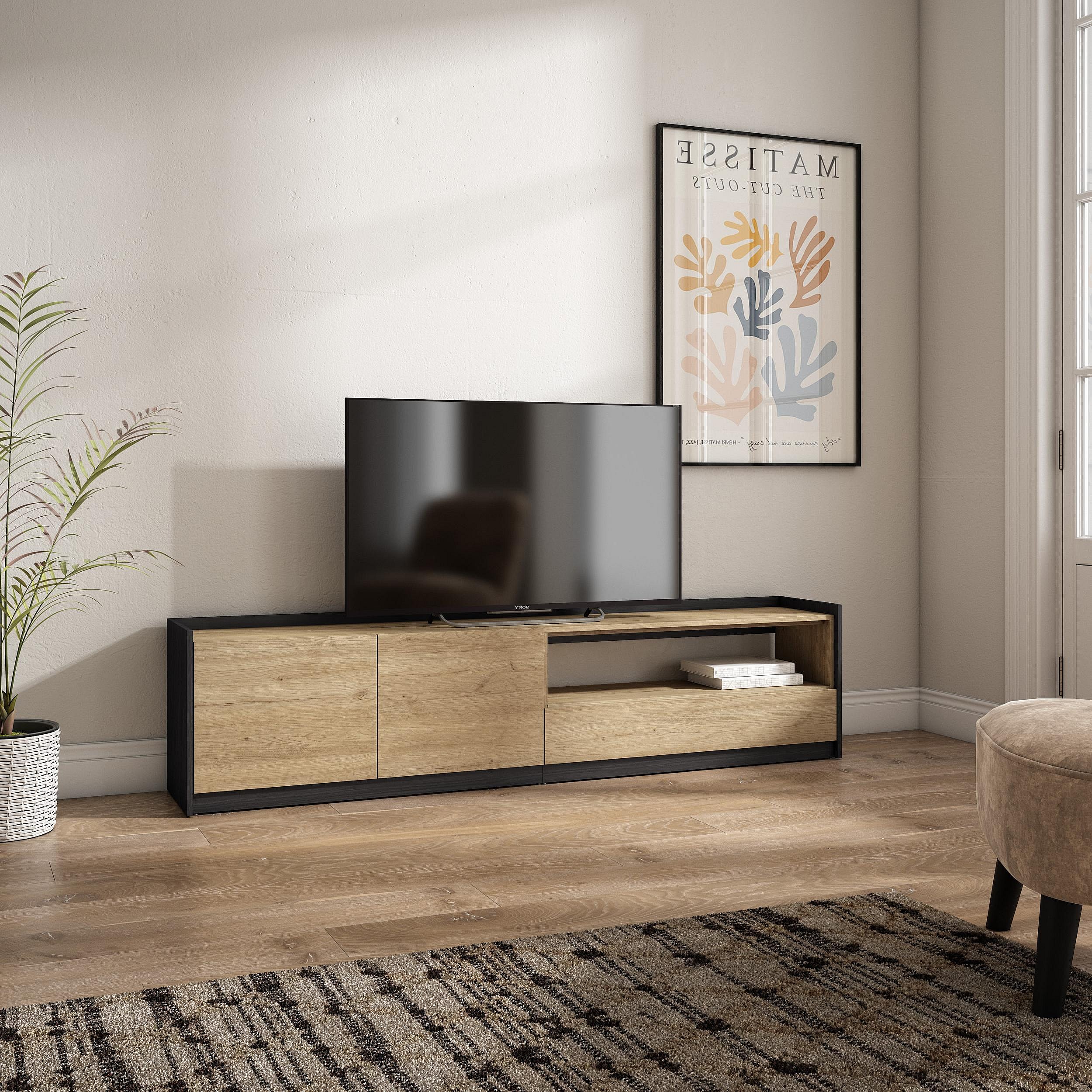 Meuble TV | Banc Télé, 207x50x37 cm, Pour les TV jusqu'à 80", Meubles de salon, Chêne et noir