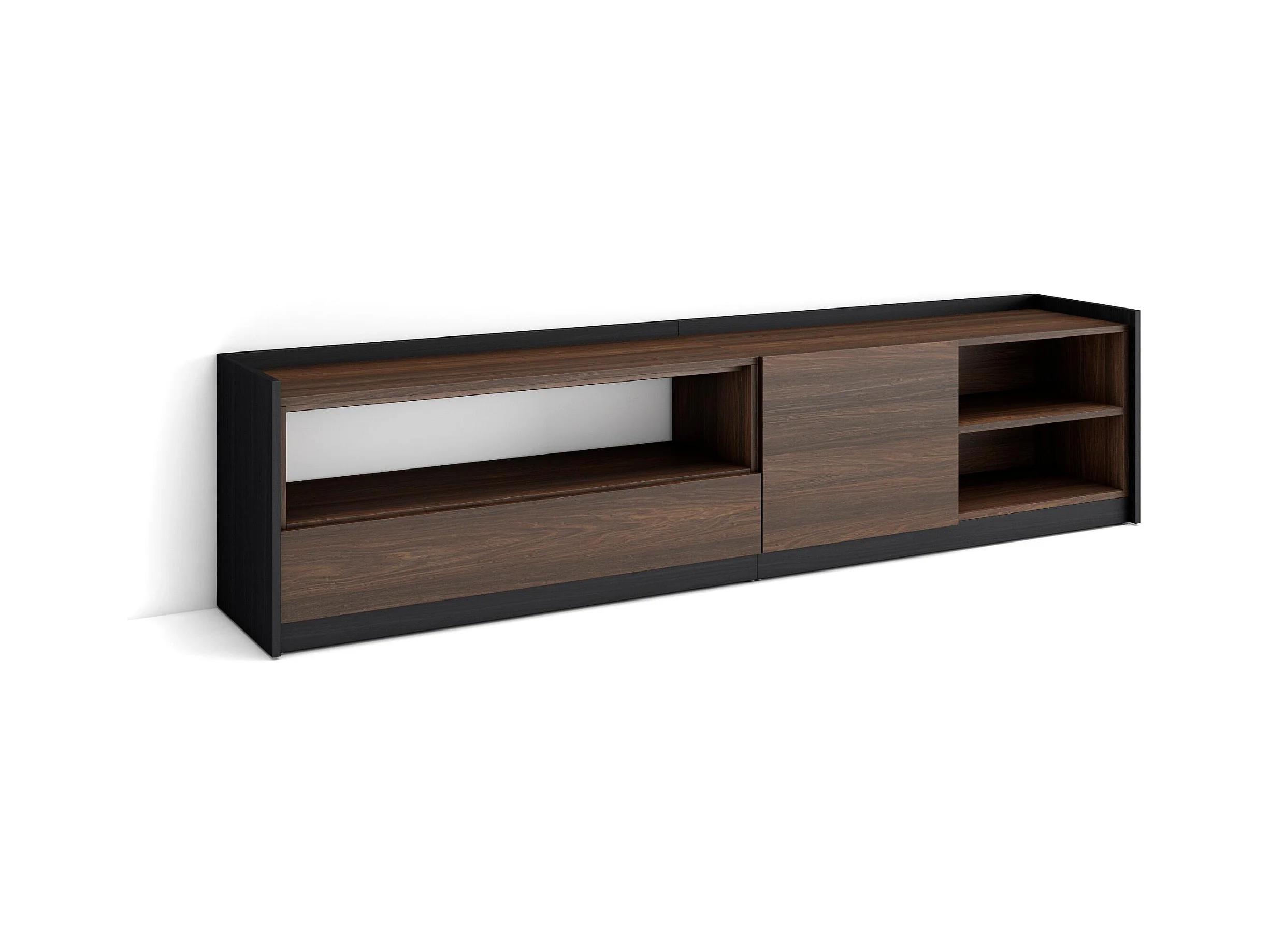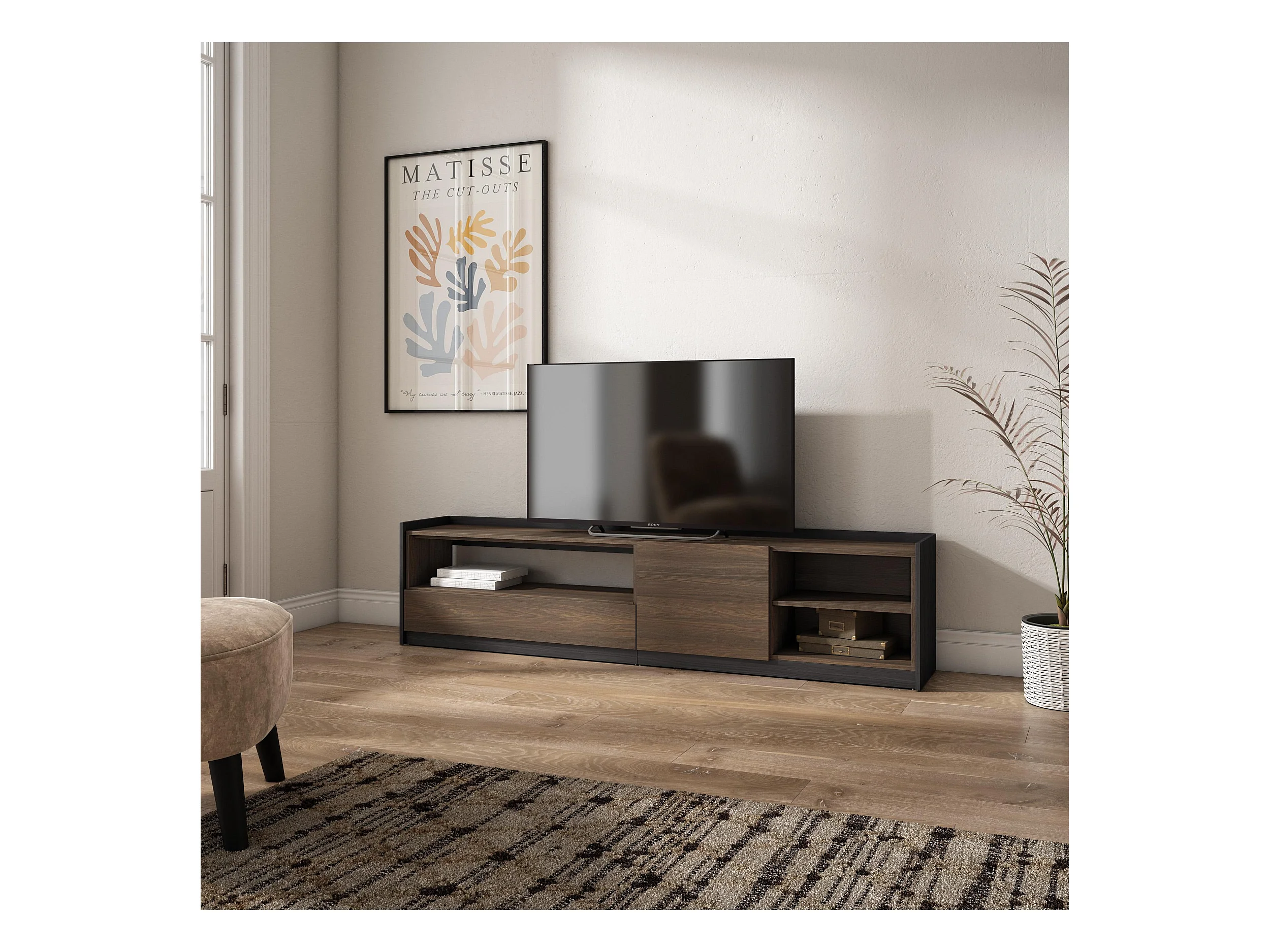 Meuble TV | Banc Télé, 207x50x37 cm, Pour les TV jusqu'à 80", Meubles de salon, Chêne foncé et Noir