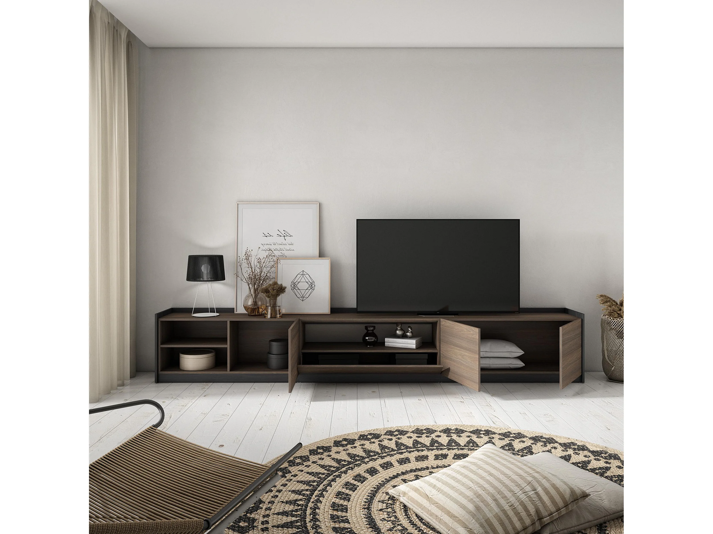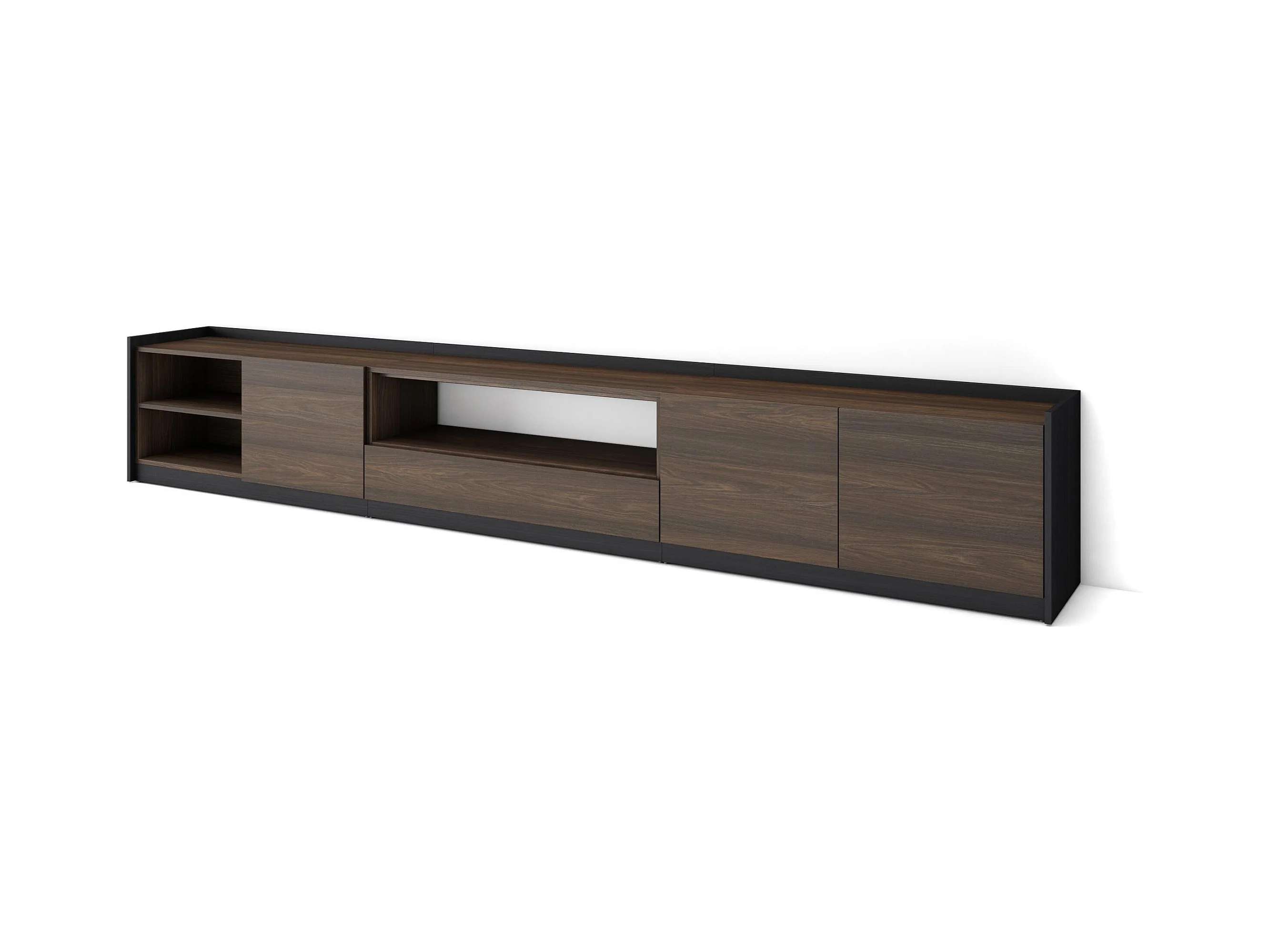 Meuble TV | Banc Télé, 310x50x37 cm, Pour les TV jusqu'à 80", Meubles de salon, Chêne foncé et Noir