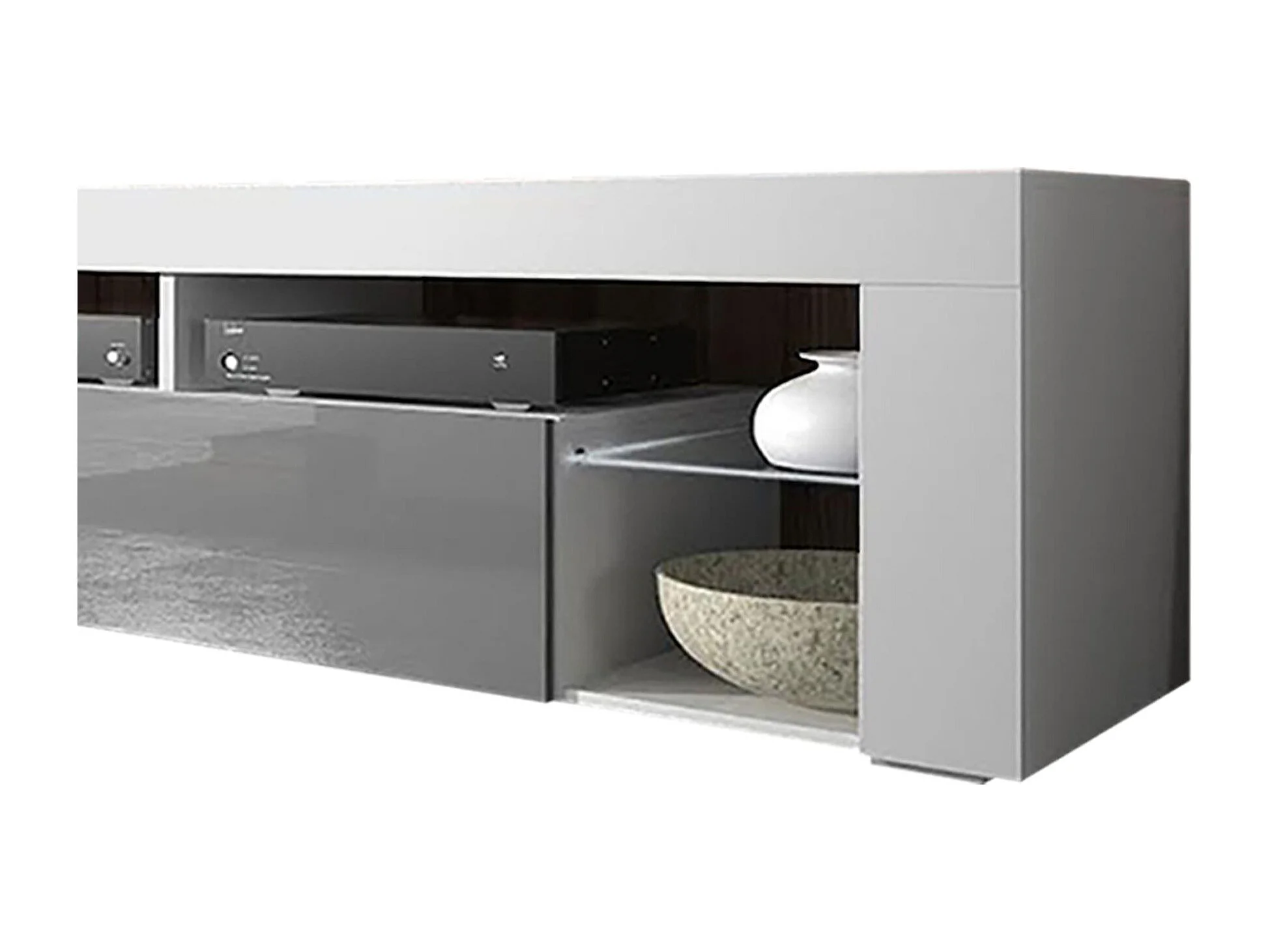 Meuble TV / Banc TV (140 cm, blanc mat / gris brillant, éclairage LED) - BIANKO
