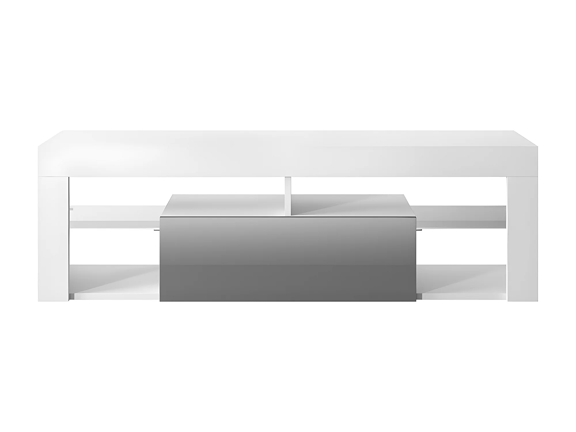 Meuble TV / Banc TV (140 cm, blanc mat / gris brillant, sans LED) - BIANKO