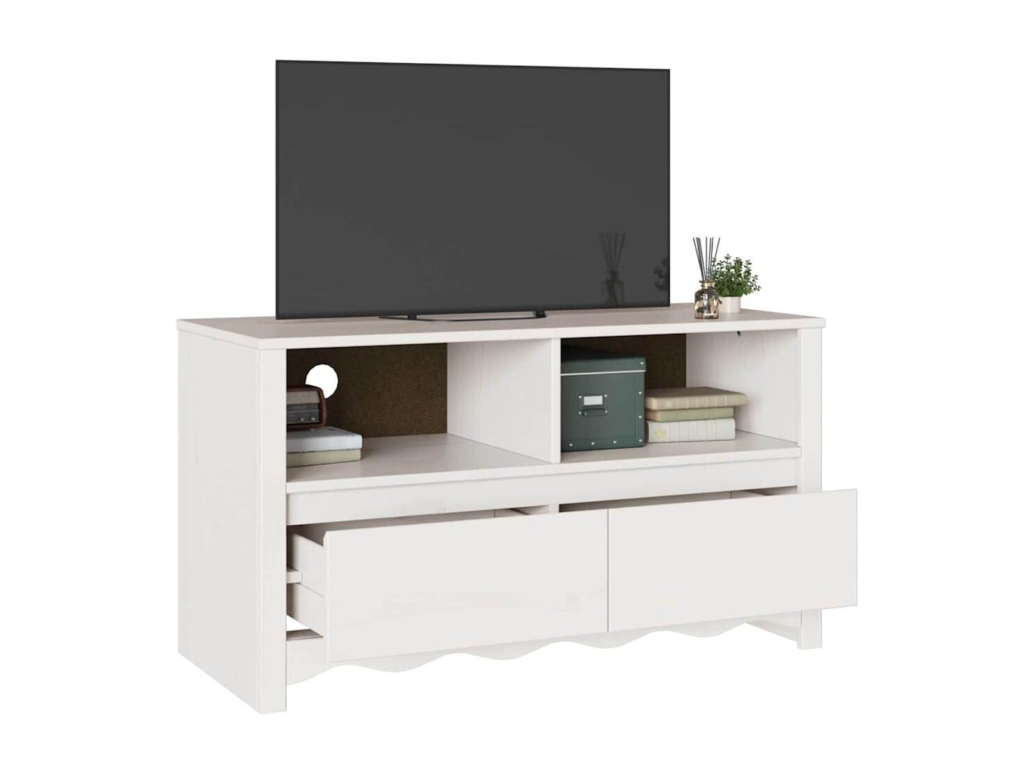 Meuble TV | Banc TV | Armoire TV FLORO blanc 114x43x55 cm bois massif de pin