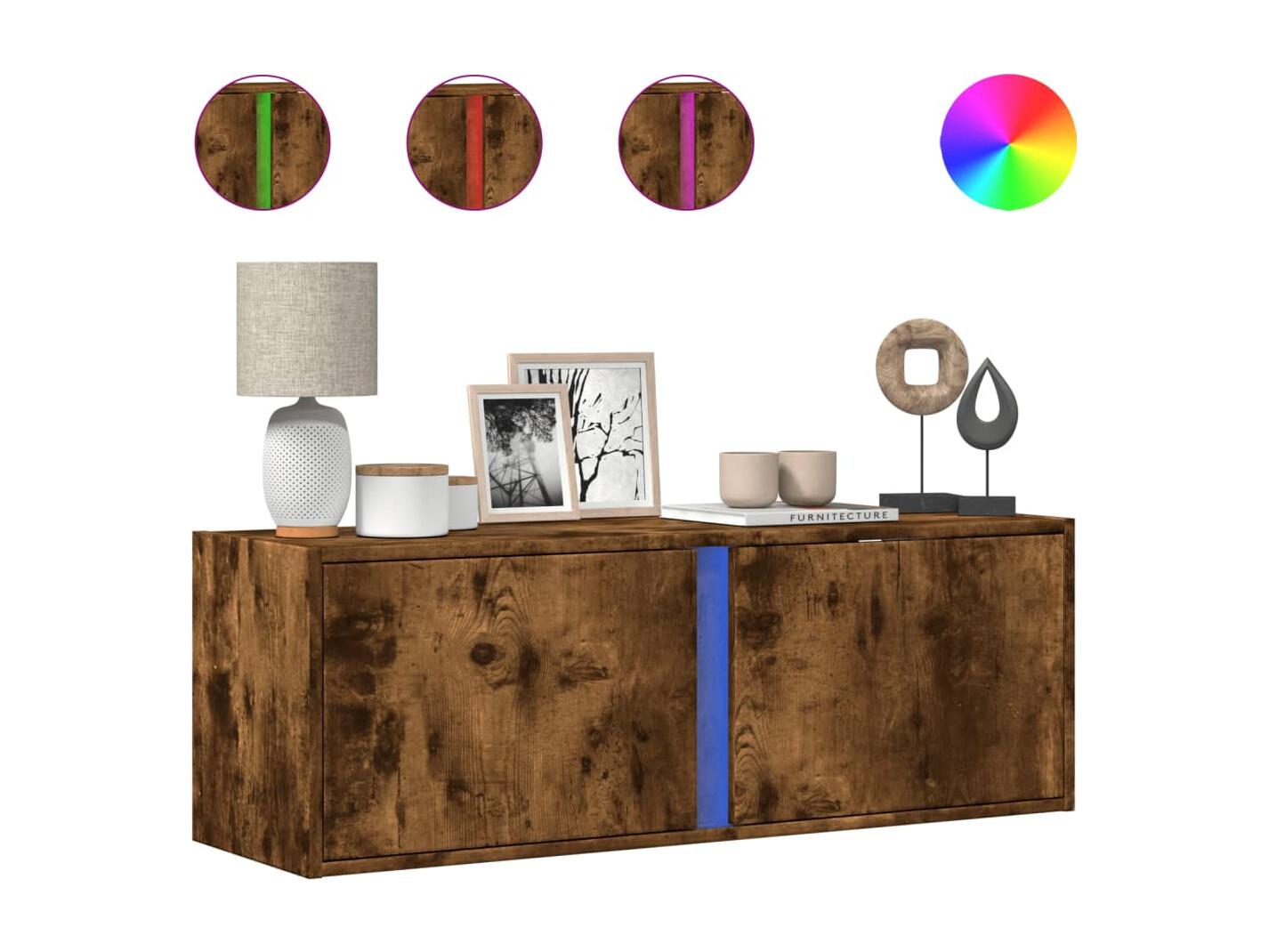 Meuble TV | Banc TV | Armoire TV mural avec lumières LED chêne fumé 100x31x35 cm
