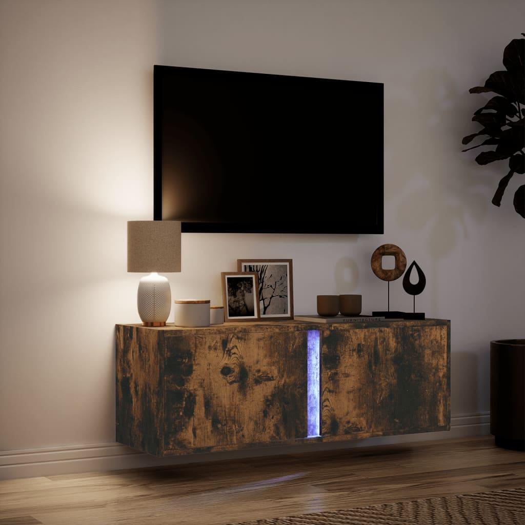 Meuble TV | Banc TV | Armoire TV mural avec lumières LED chêne fumé 100x31x45 cm