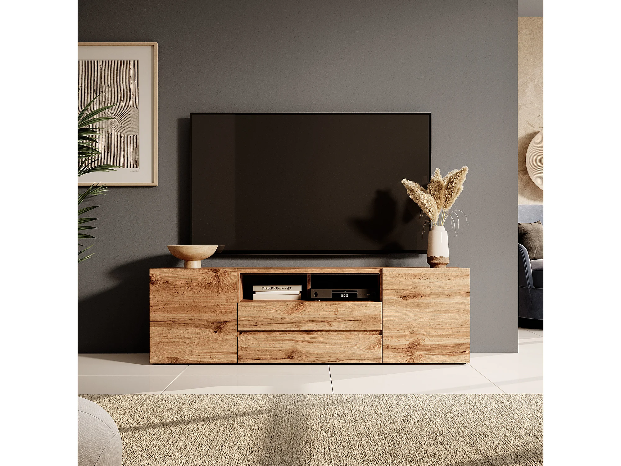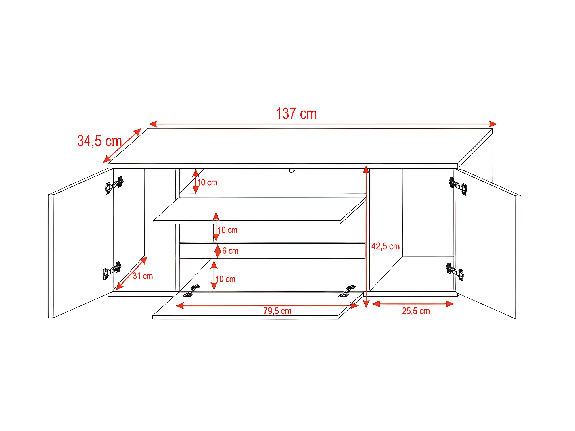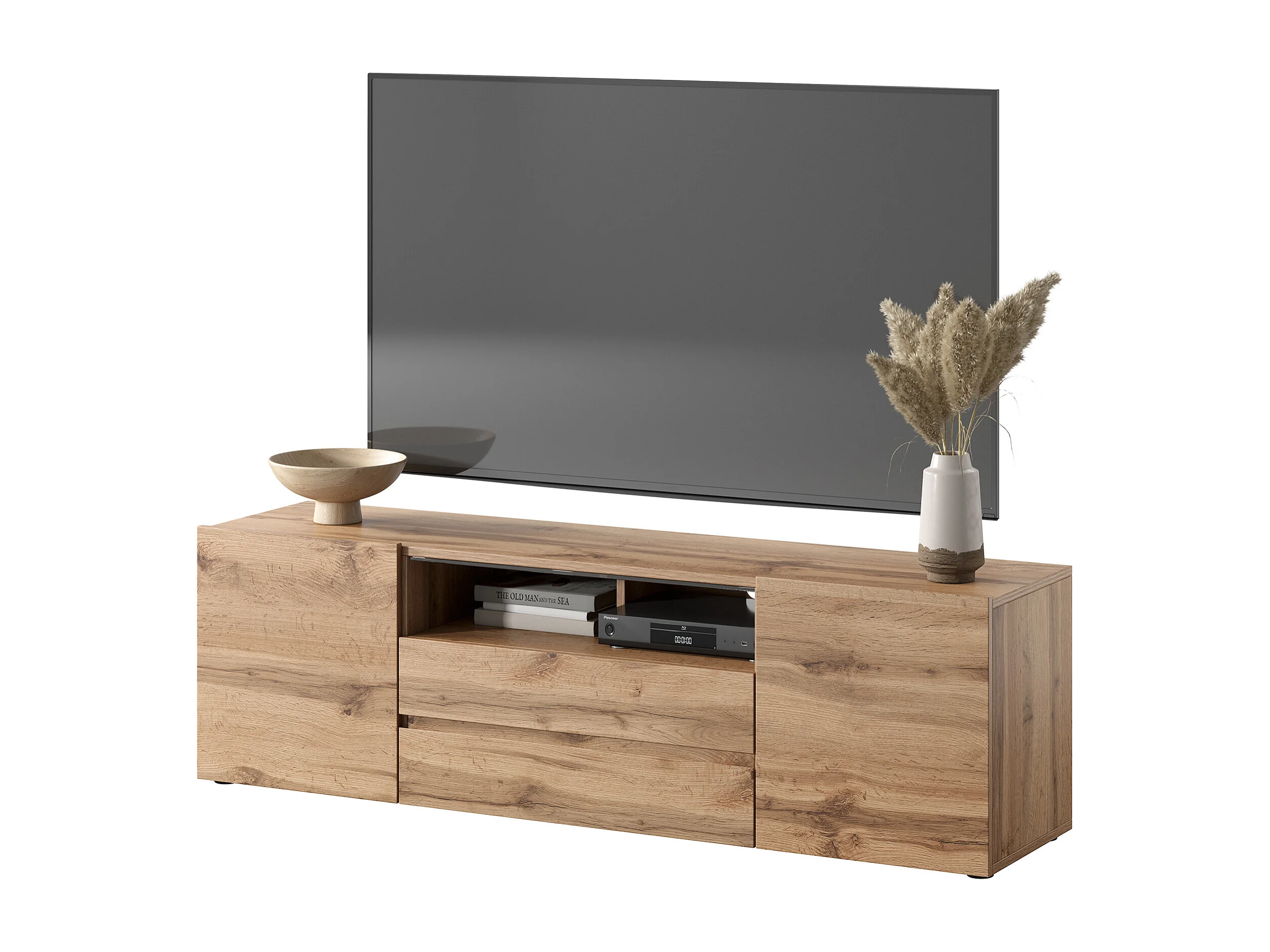 Meuble tv / Banc tv (chêne wotan, 137 cm, avec LED) - BROS