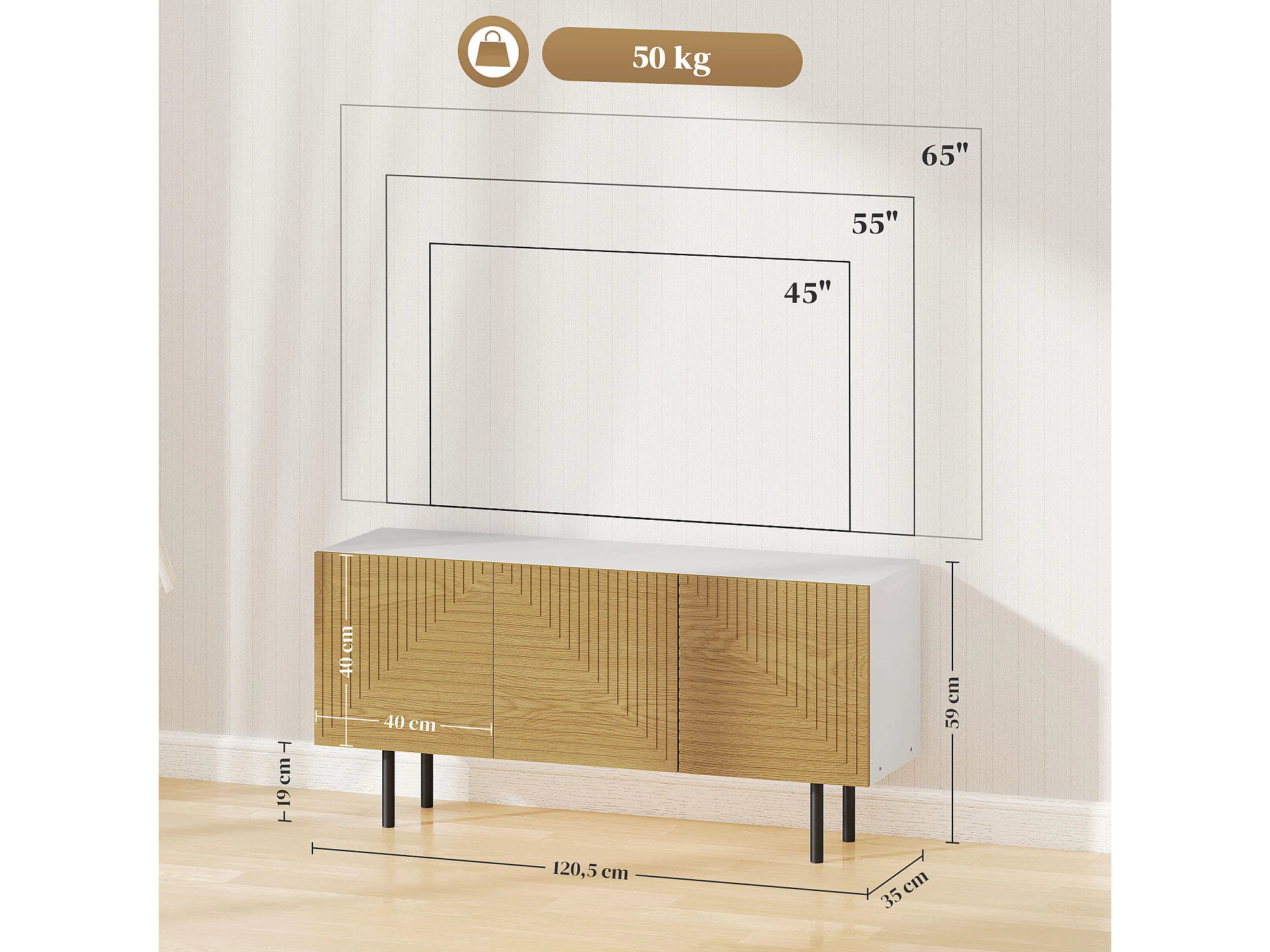 Meuble TV 2 niches et 2 portes aux façades effet vague L140 cm - BOLOGNE