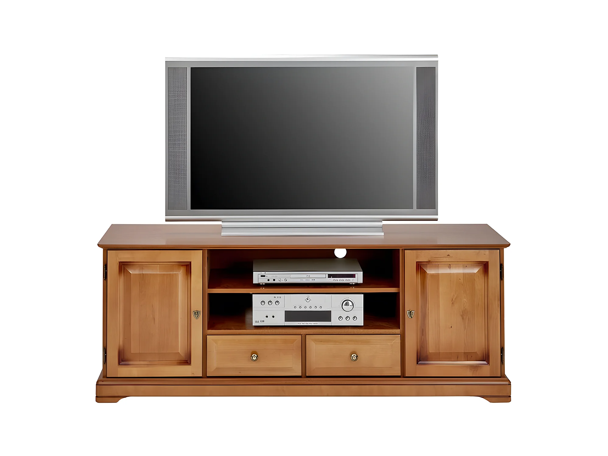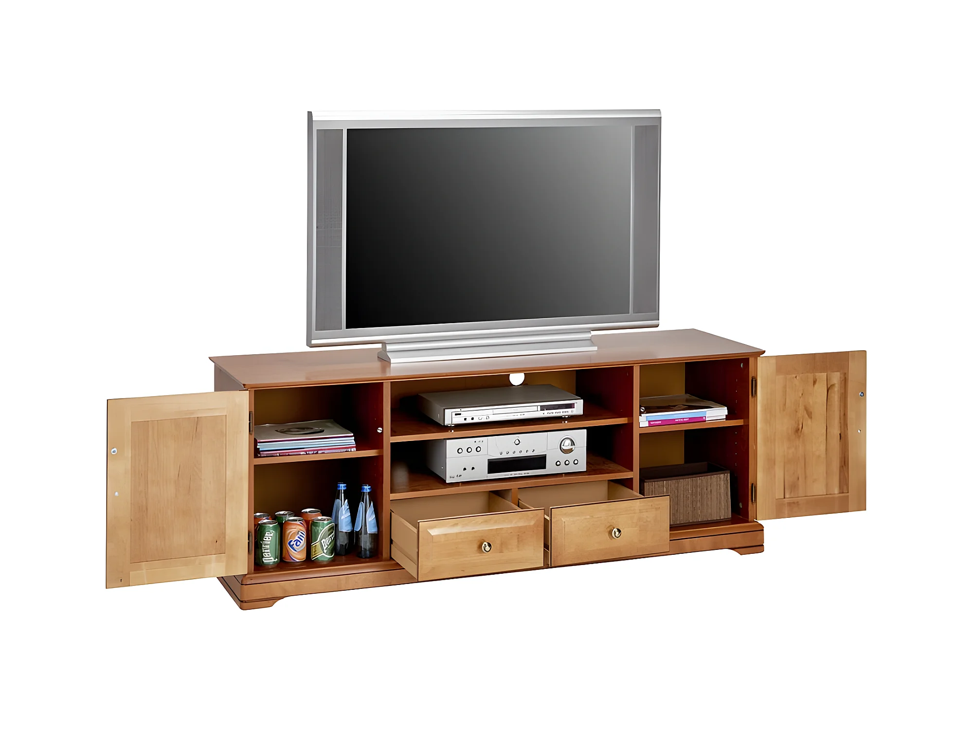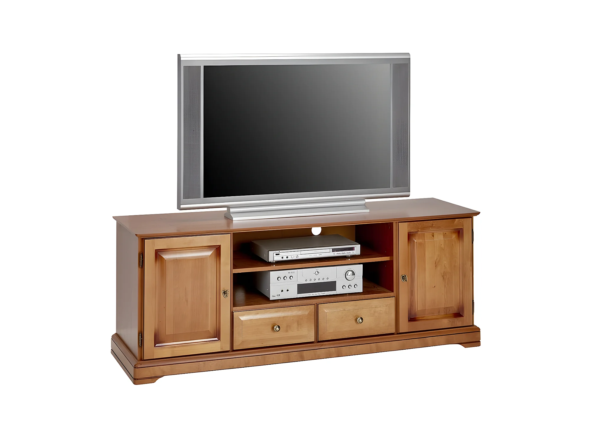 Meuble TV BAR 60 Pouces Merisier 2 Portes 2 Tiroirs L 158.8 H 60.3 P 46 cm