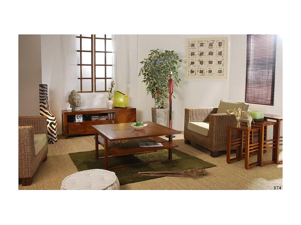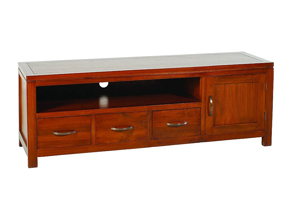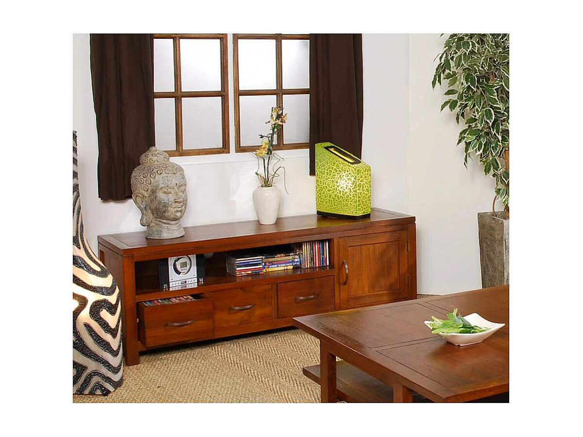 LAUREN - Meuble TV bas 3 tiroirs marron bois Mindi