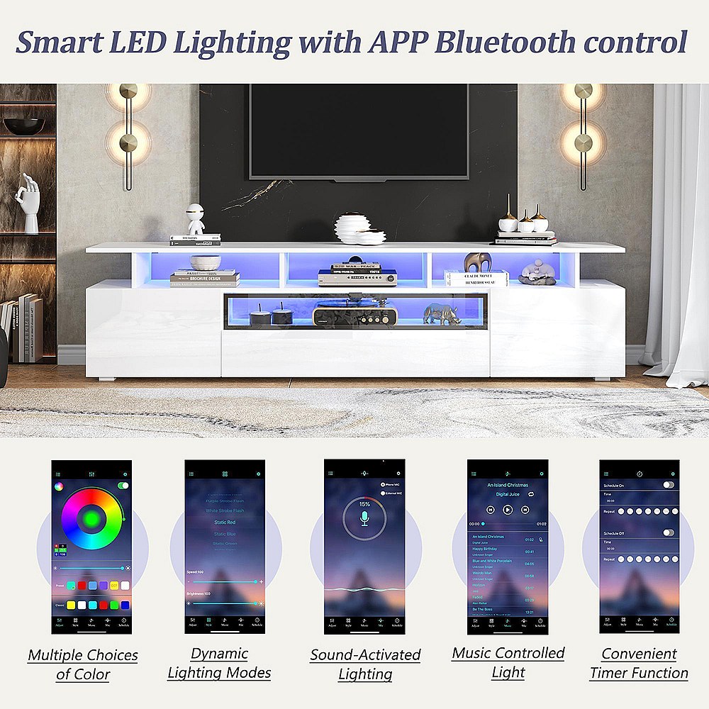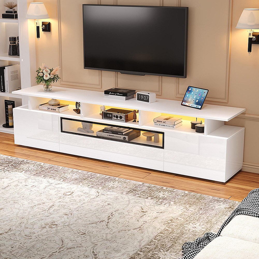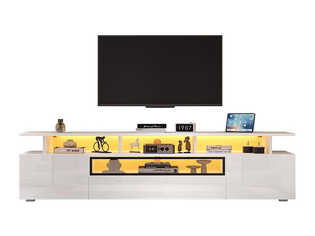 Meuble TV bas brillant 4 tiroirs LED TV 80 pouces blanc