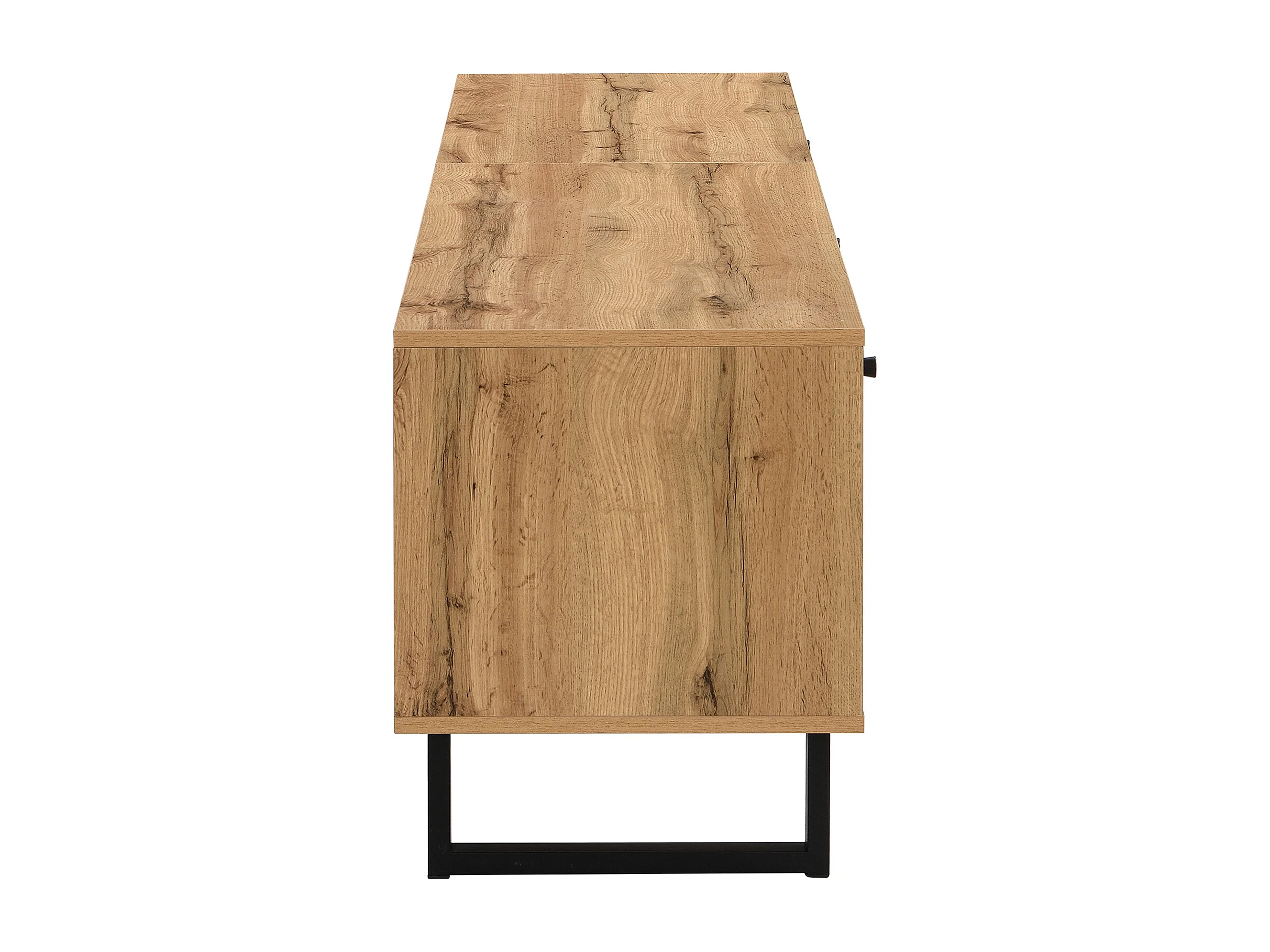 Meuble TV Bas, LED Meuble TV Chambre , avec Compartiments et Tiroir, Industriel Bois et Metal Noir
