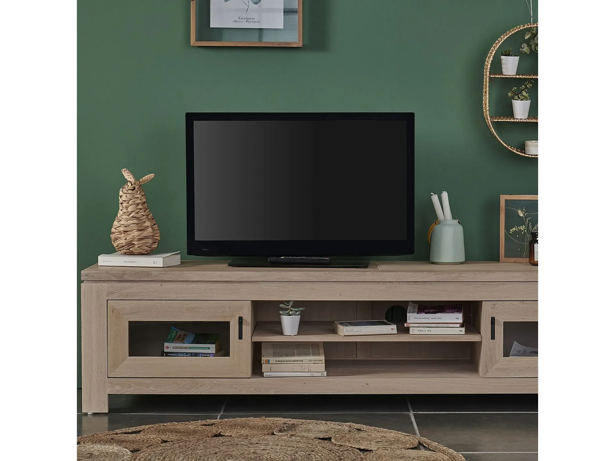 Meuble TV bas moderne en chêne blanchi L180 - BOSTON