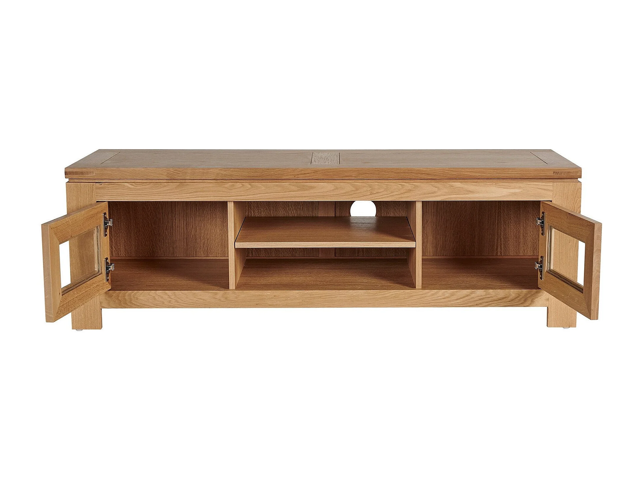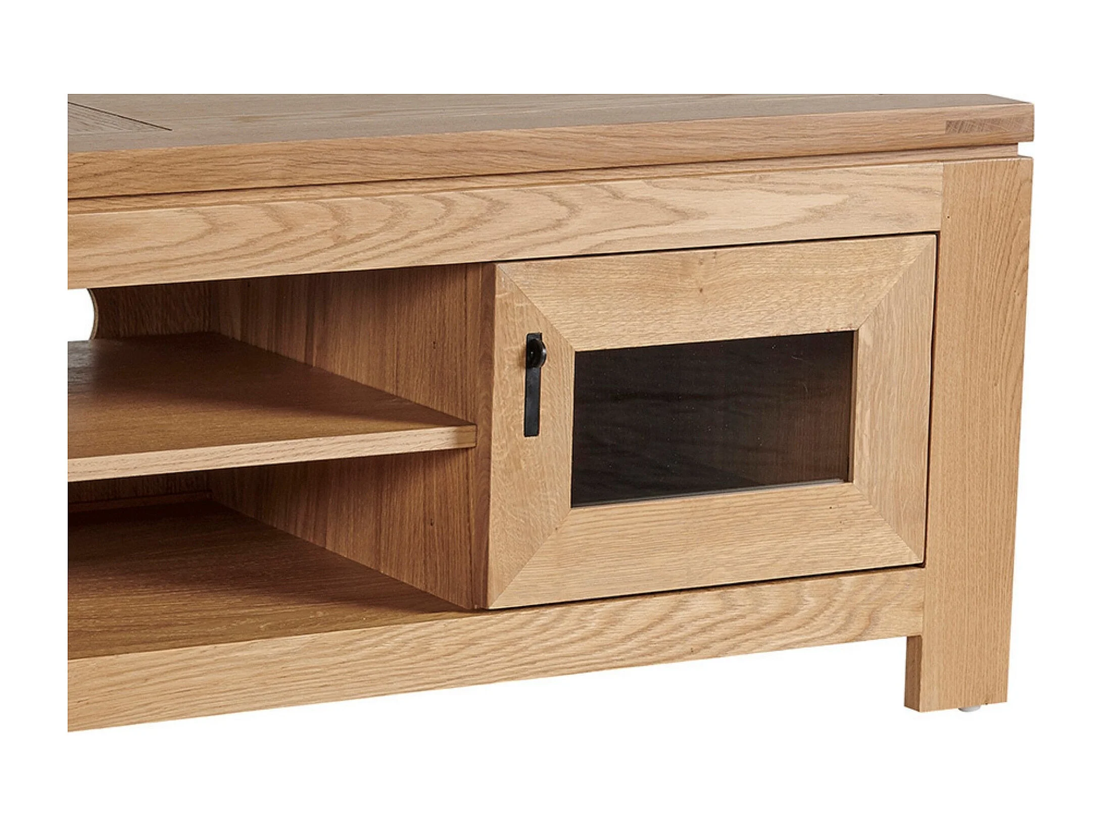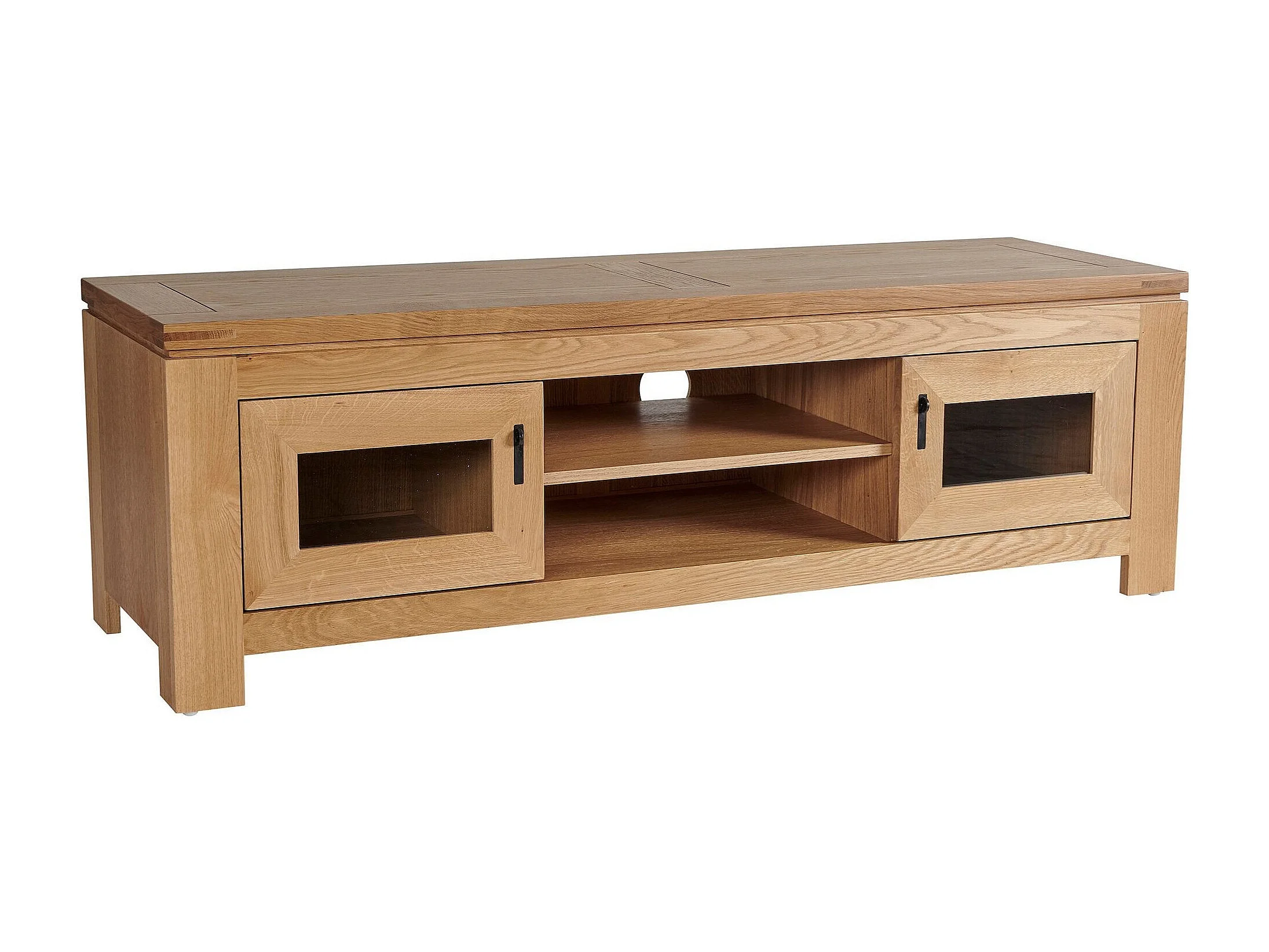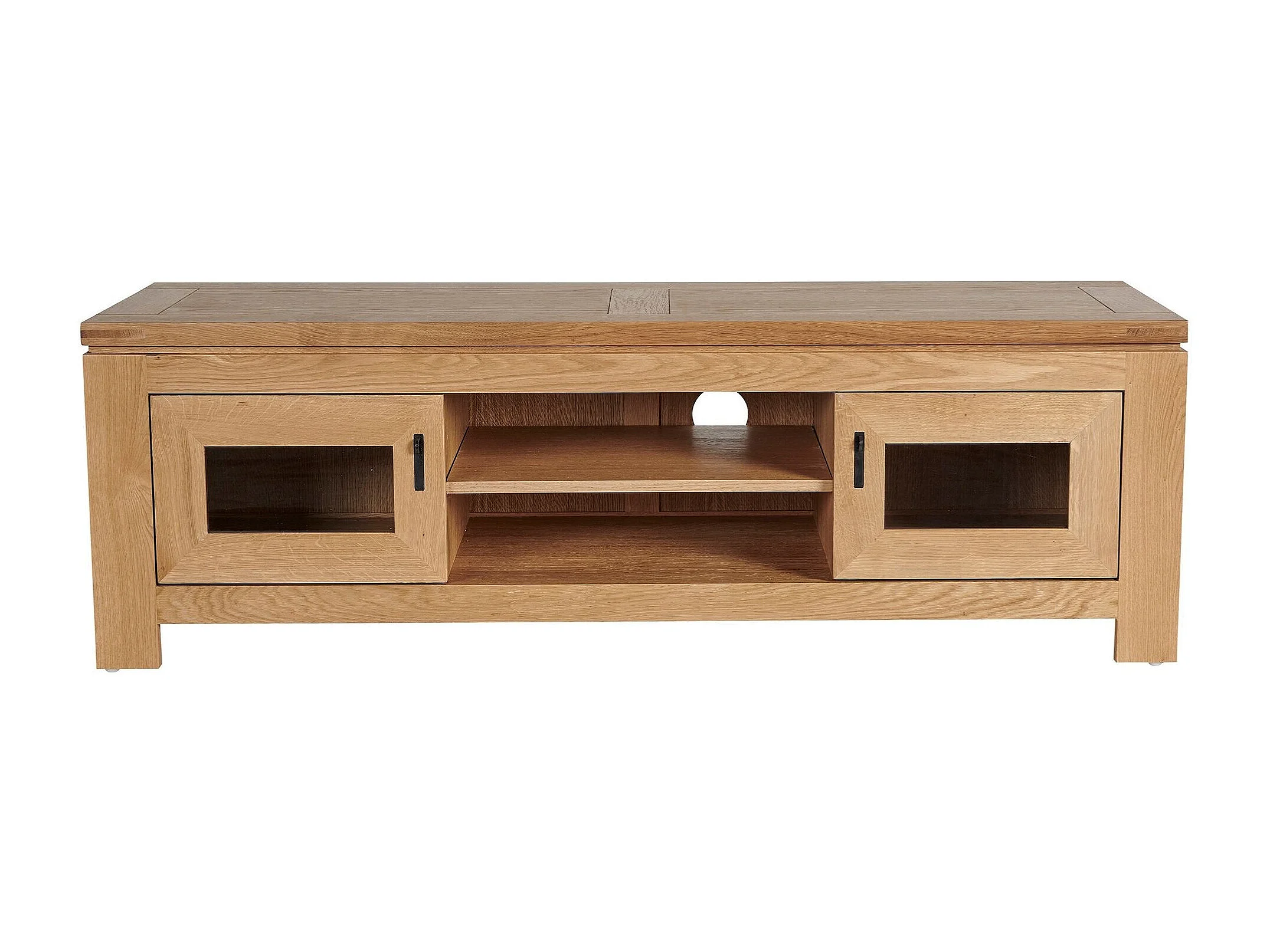 Meuble TV bas moderne en chêne clair 2 portes 2 niches - BOSTON