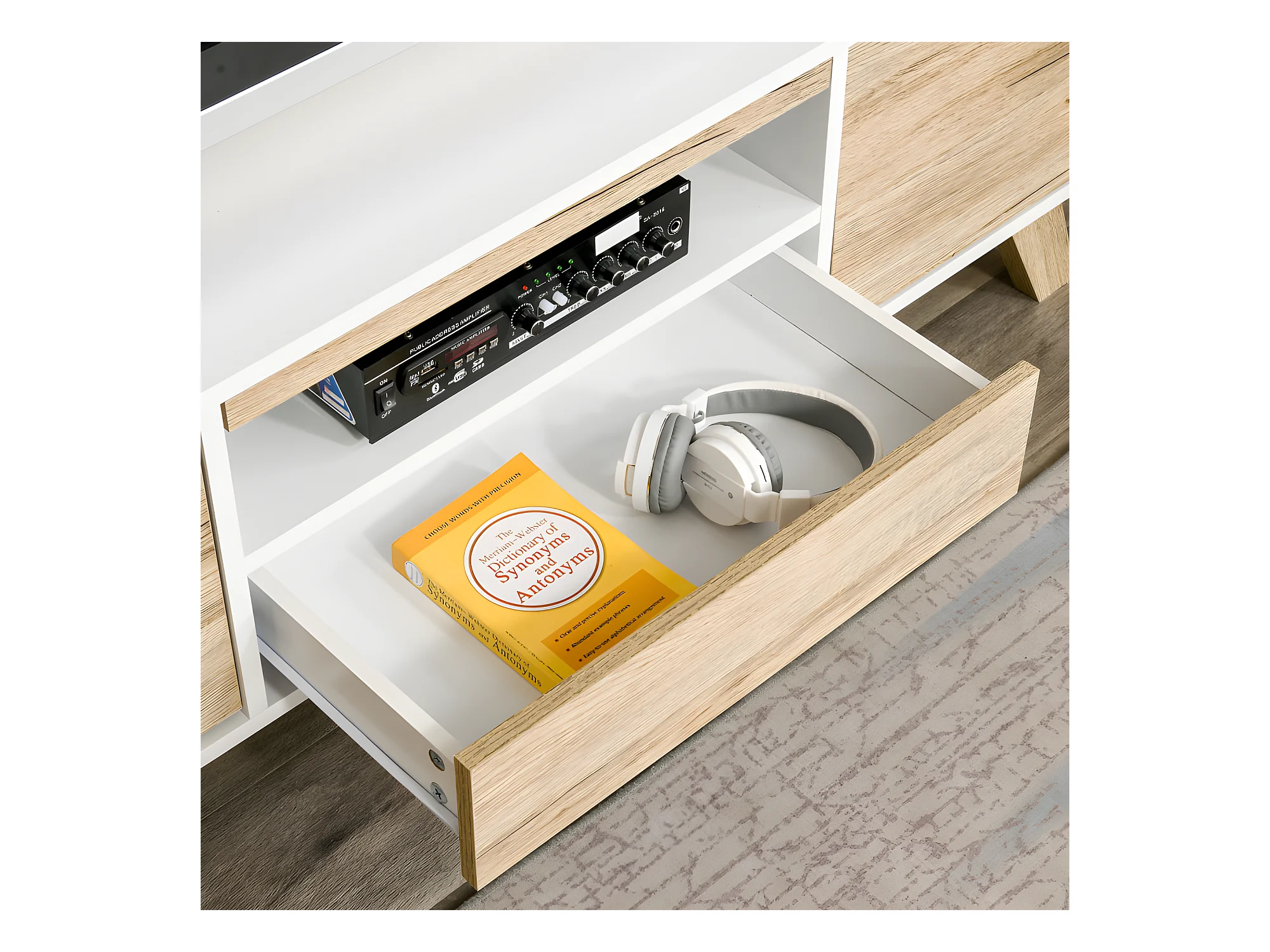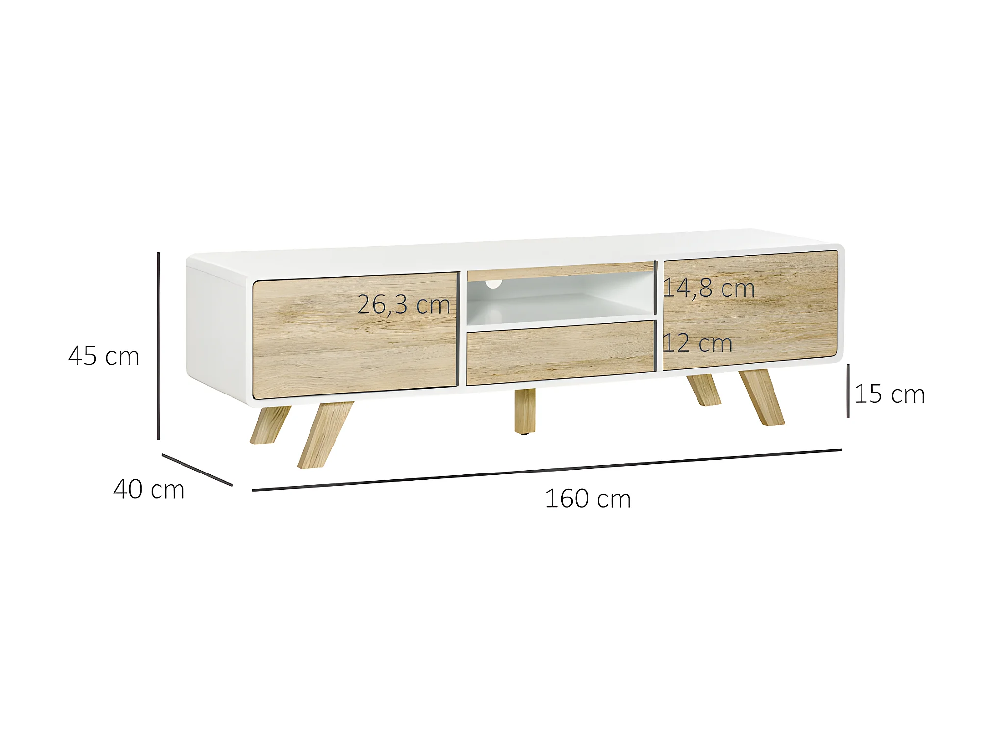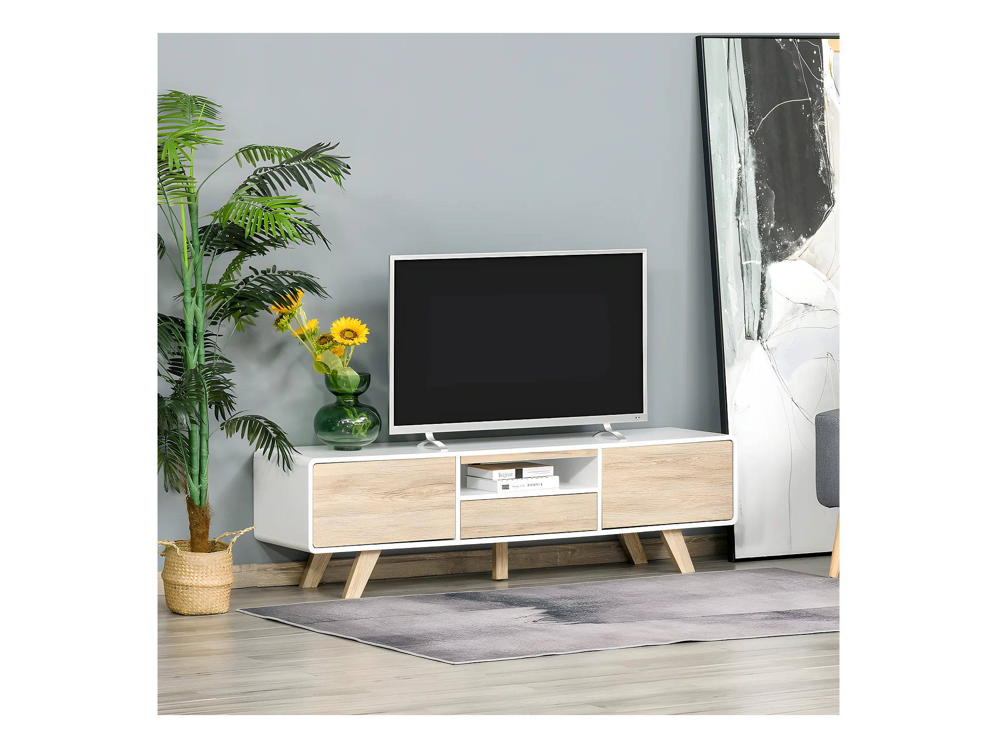 Meuble tv bas scandinave CÔME blanc aspect bois
