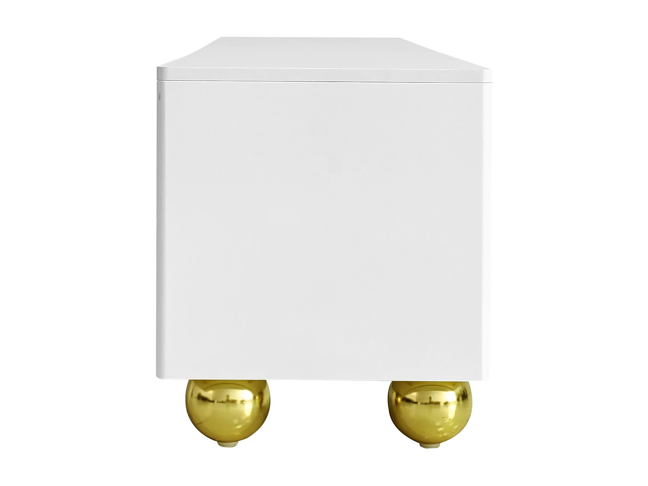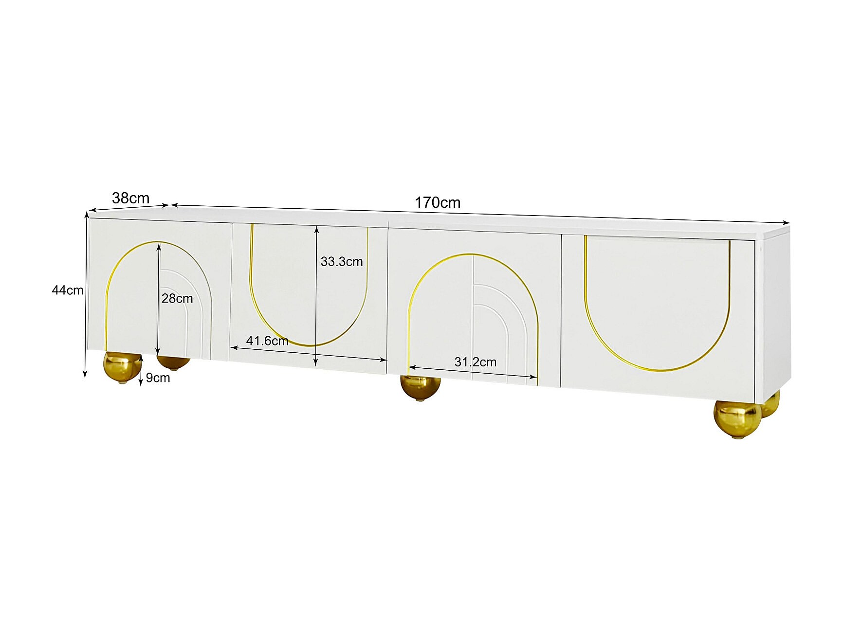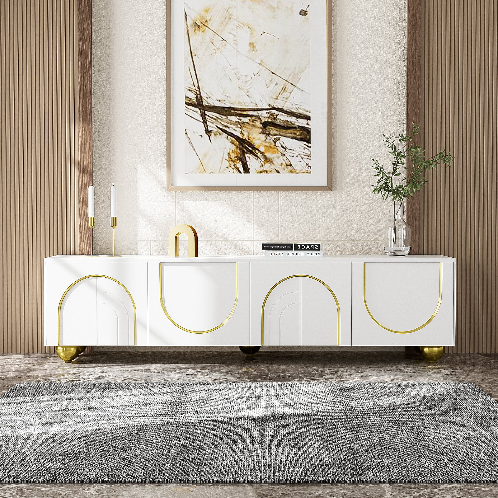 Meuble TV Blanc avec 4 Portes, Table Television Salon avec Pieds arrondis et cloisons, Meuble TV Bas
