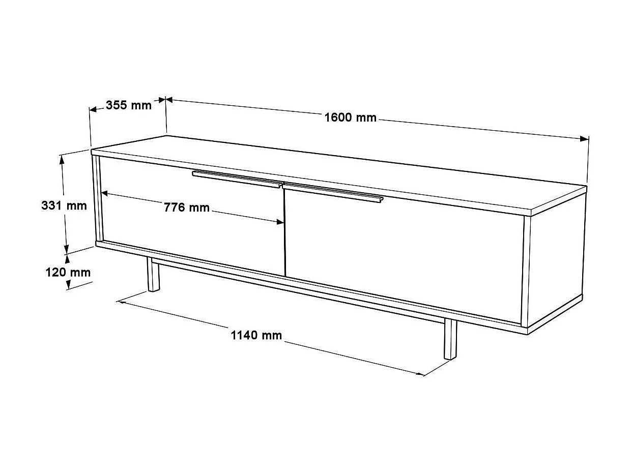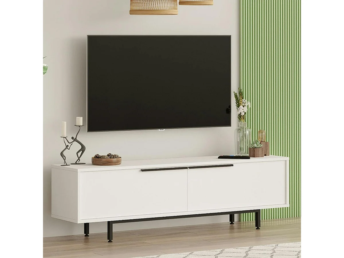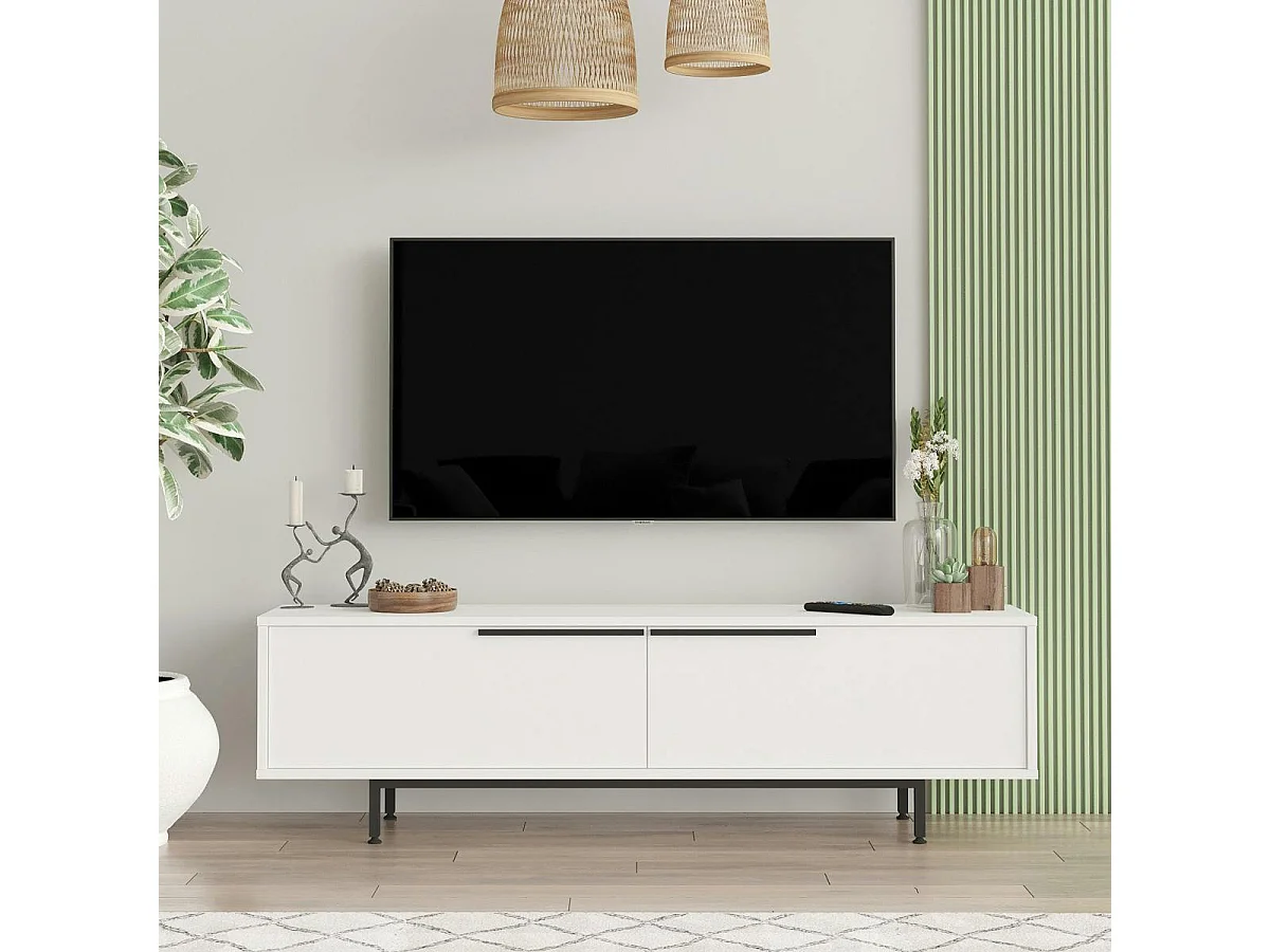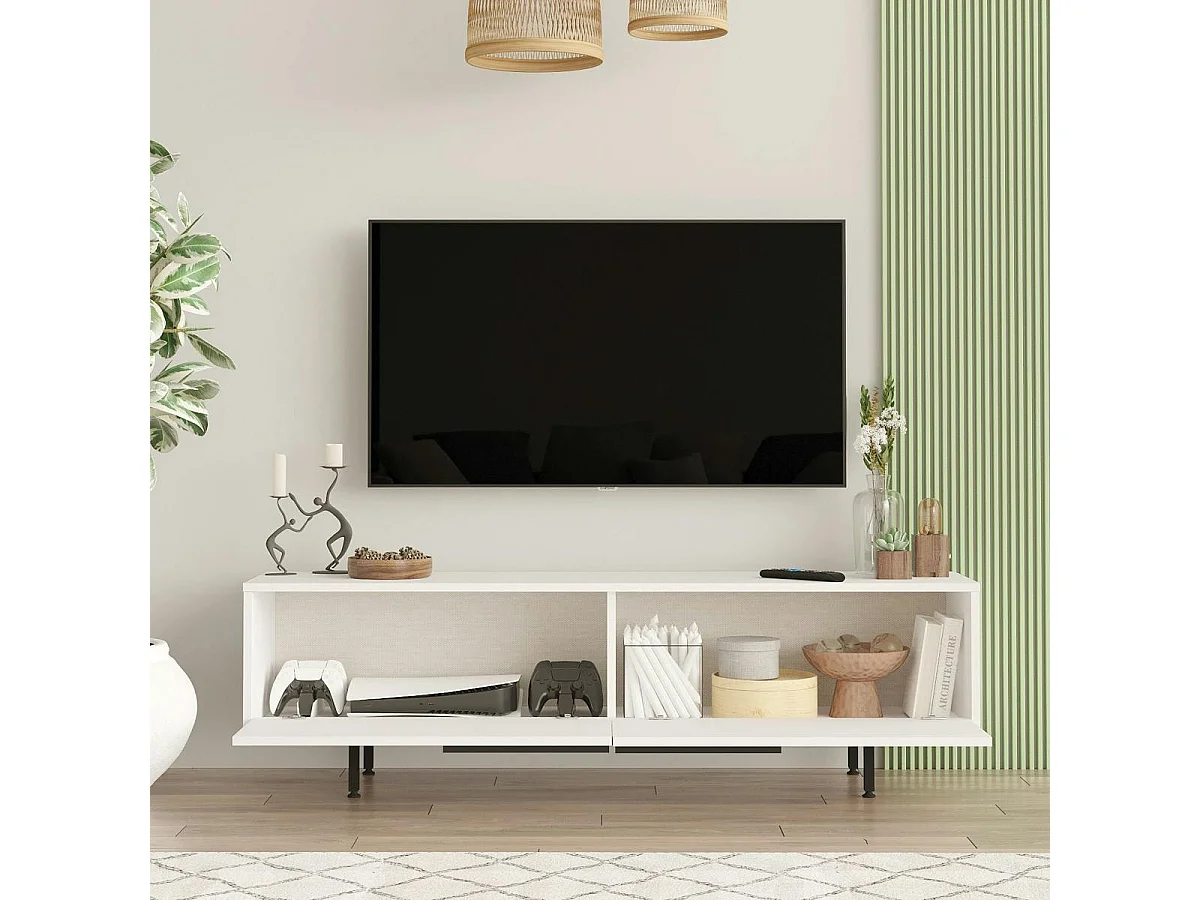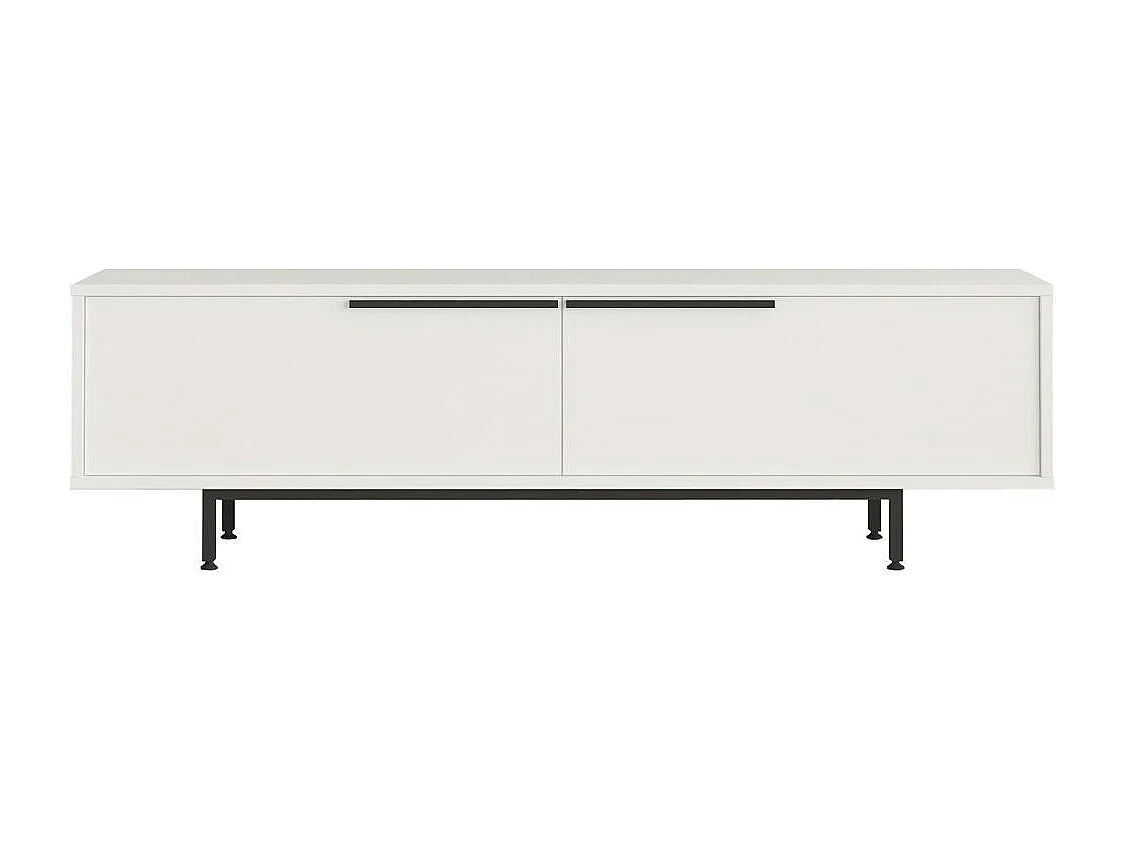 Meuble TV blanc avec rangement pieds métal noir JENA