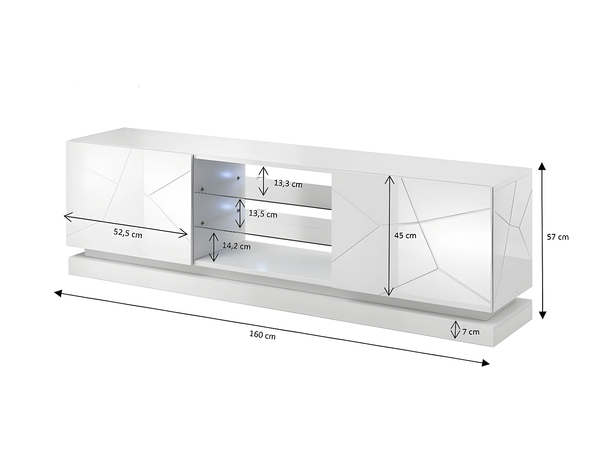 Meuble TV Blanc brillant 160x57x42cm QUEEN meuble Hi-fi luxueux sideboeard commode sur pied