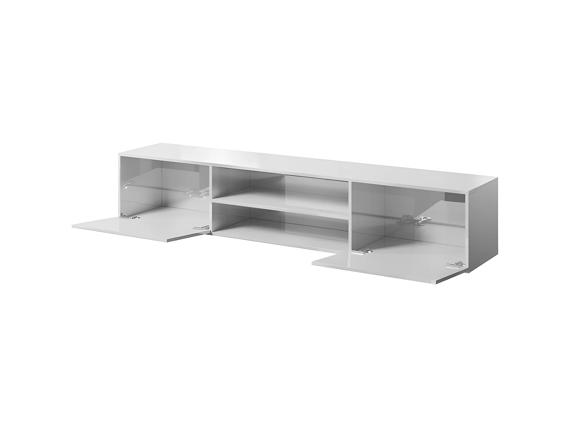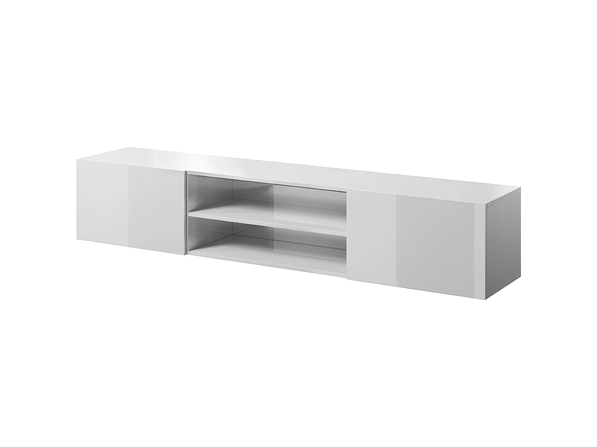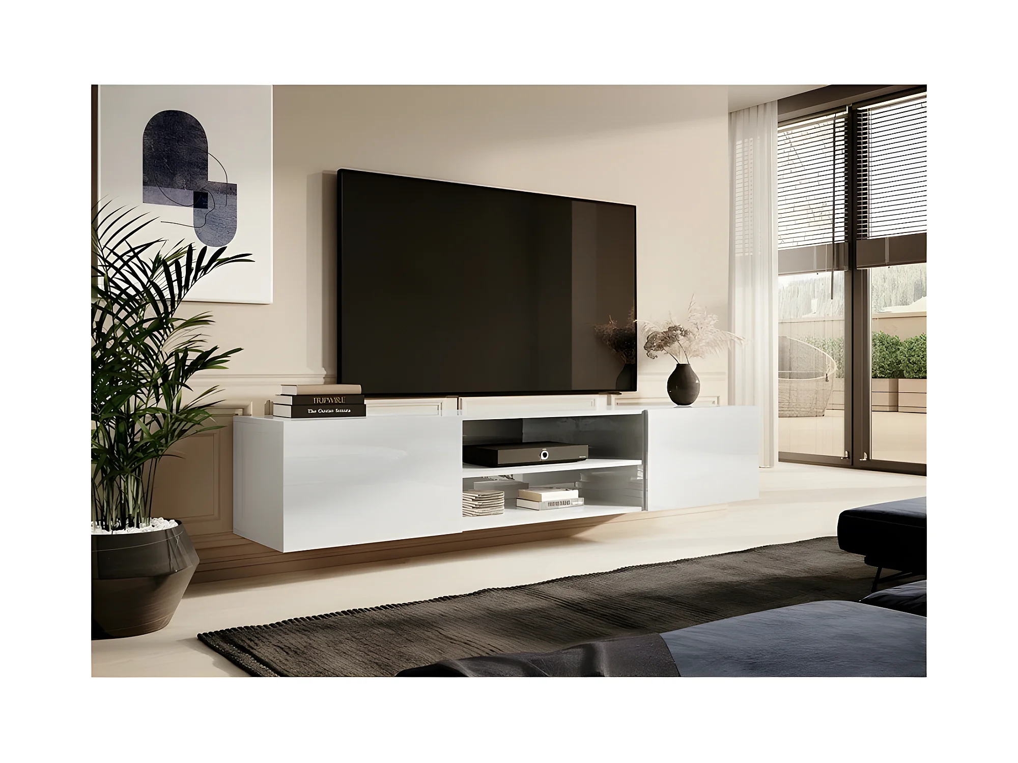 Meuble TV Blanc brillant 200x37x40cm SLIKA K à suspendre meuble Hi-fi 2 portes commode
