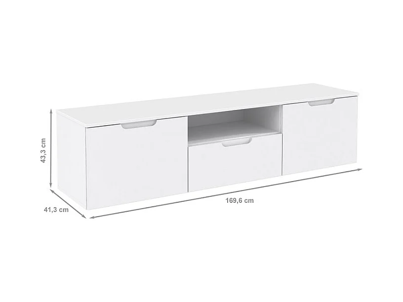 Meuble TV 170 cm blanc laqué et mat 2 portes 1 tiroir - PURE