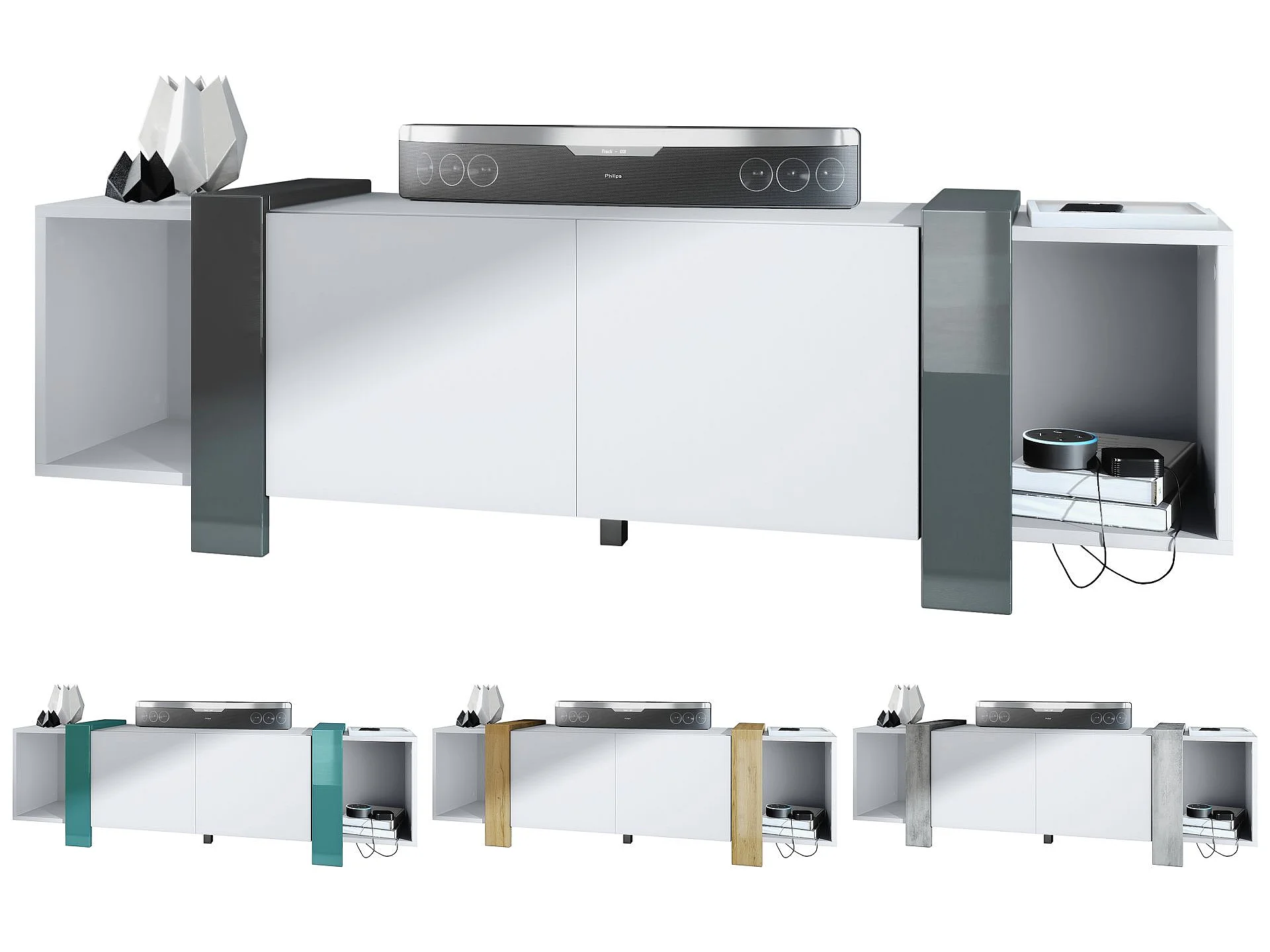 Meuble TV Blanc Mat Et Aspect Chêne Nordique (lxhxp) : 149 X 45,5 X 34 Cm