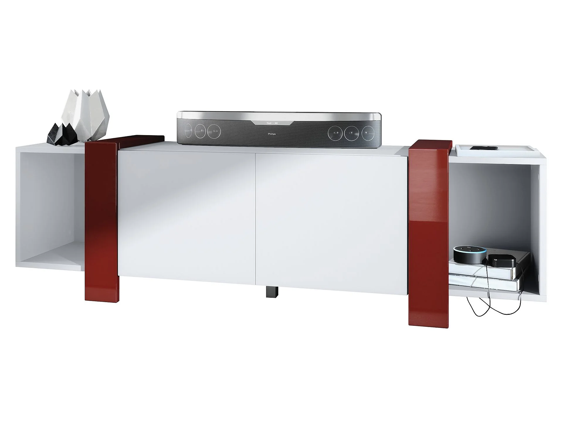Meuble TV Blanc Mat Et Bordeaux Laqué (lxhxp) : 149 X 45,5 X 34 Cm