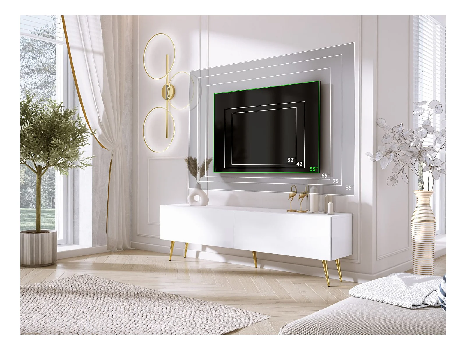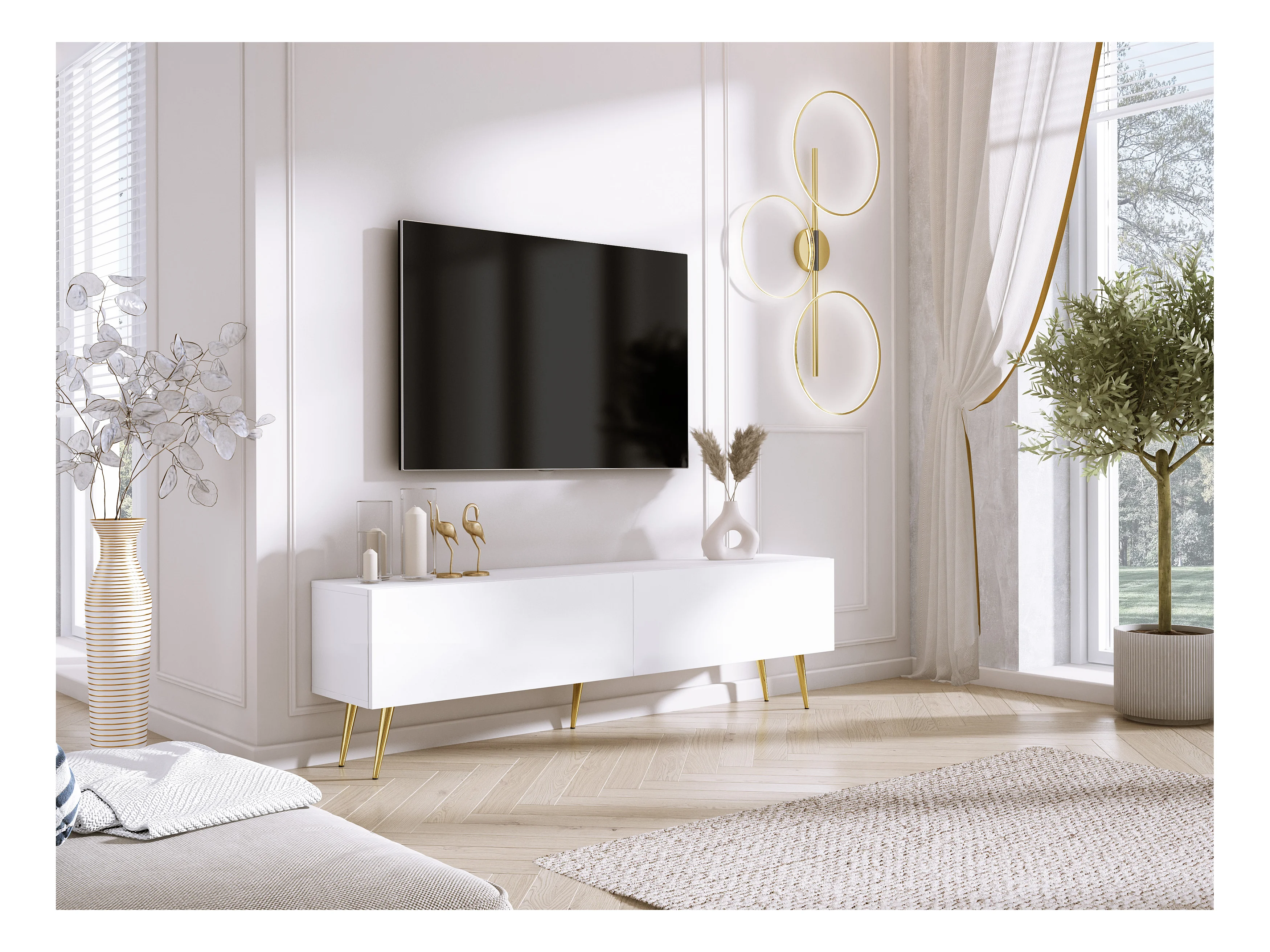 Meuble TV : Blanc Mat, pieds dorées, 170 x 52 x 32 cm