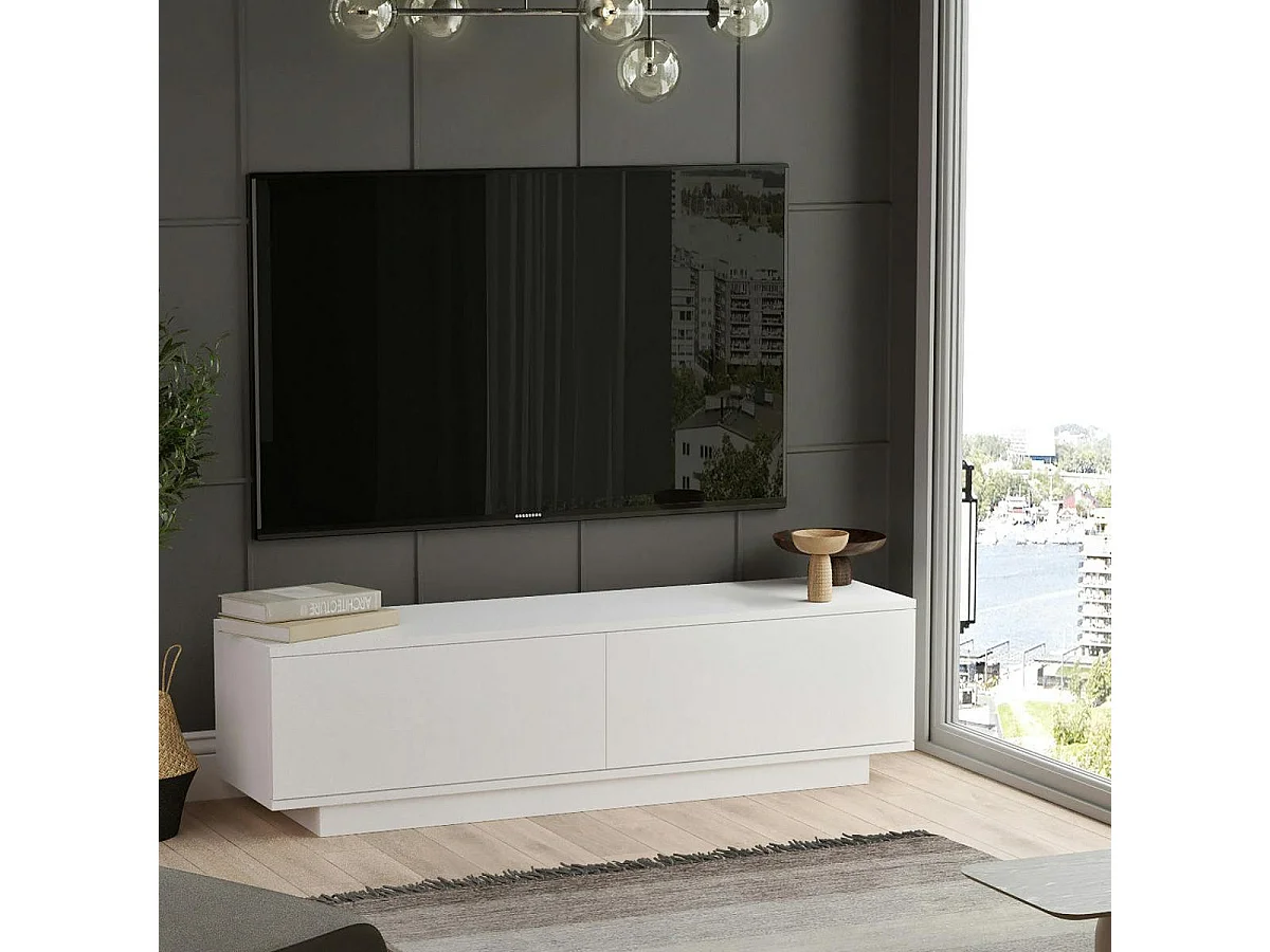 Meuble TV blanc style design 2 portes abattantes MARFA