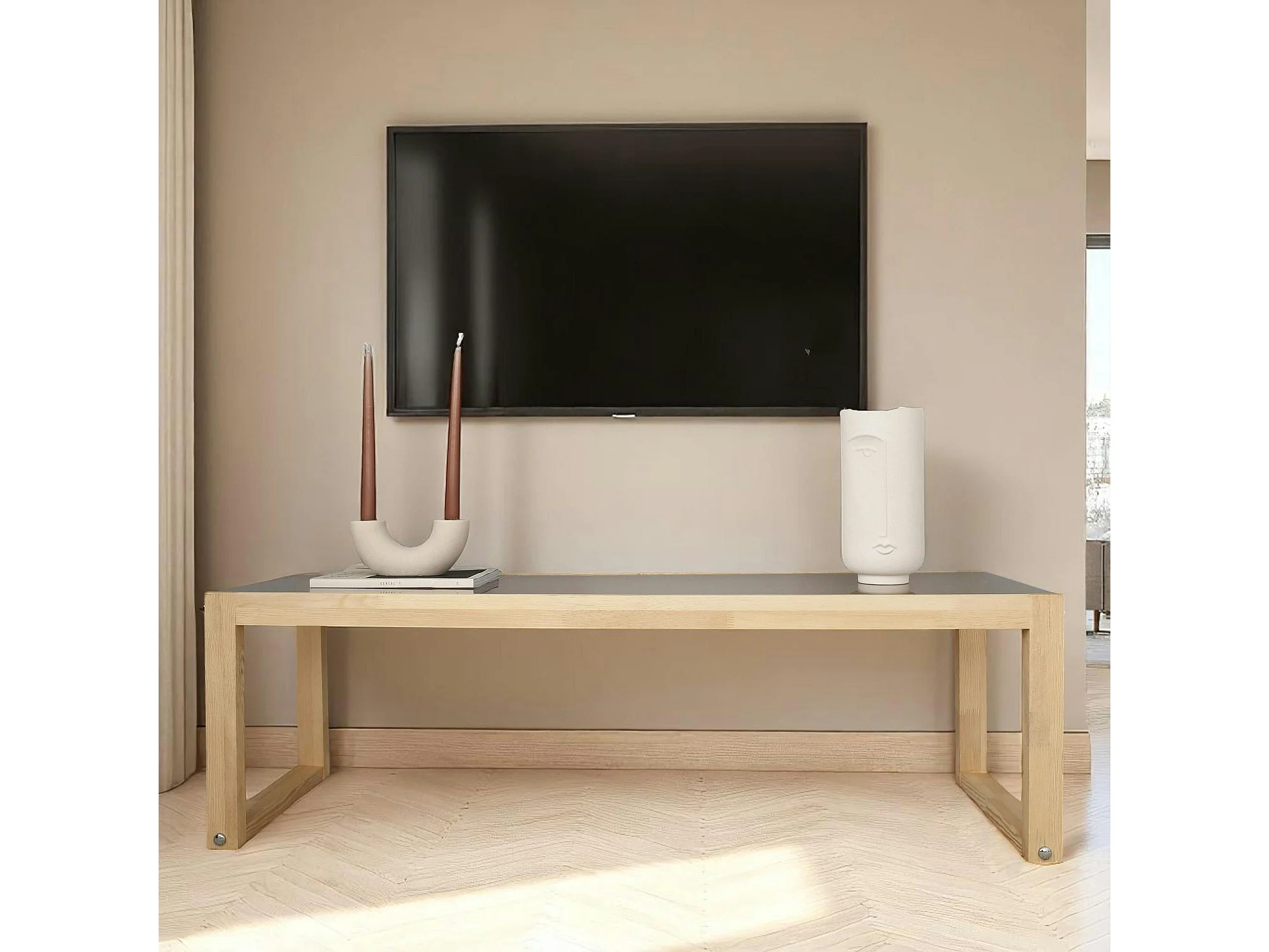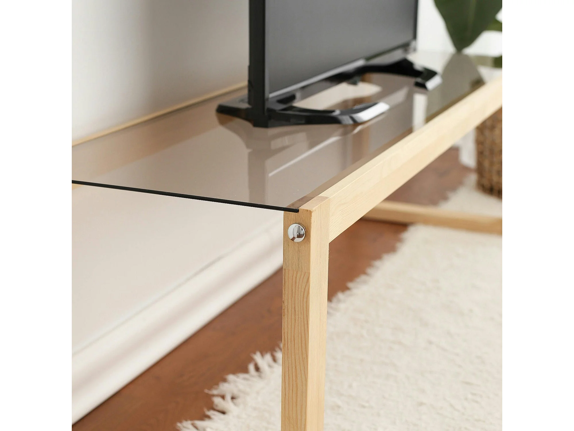 Meuble TV bois blond verre fumé - 130 cm, scandi LHASA