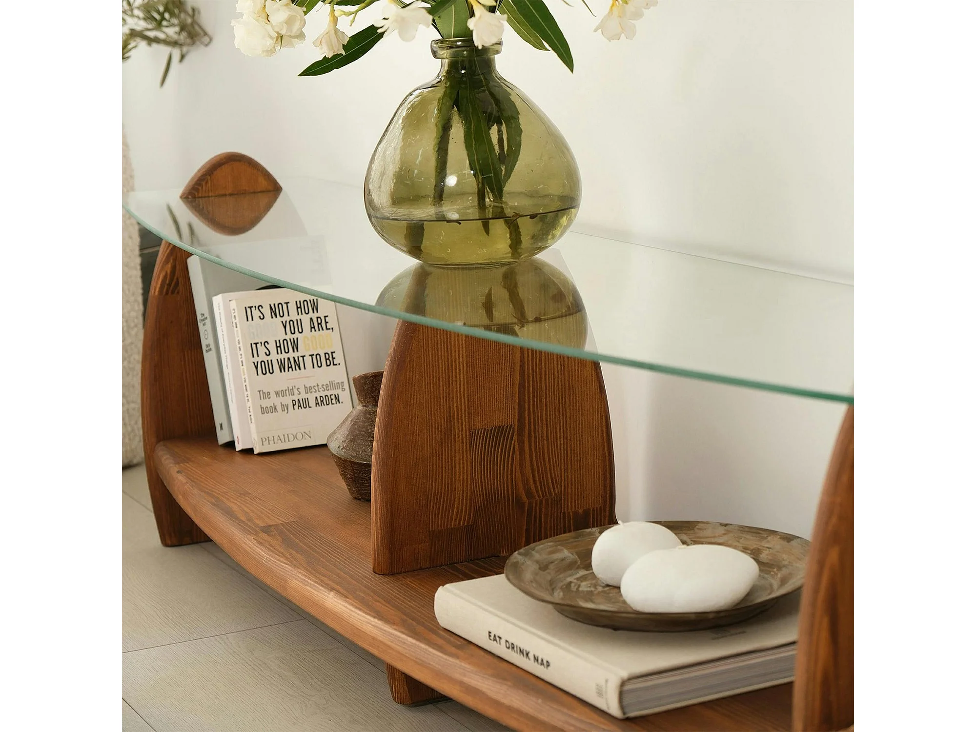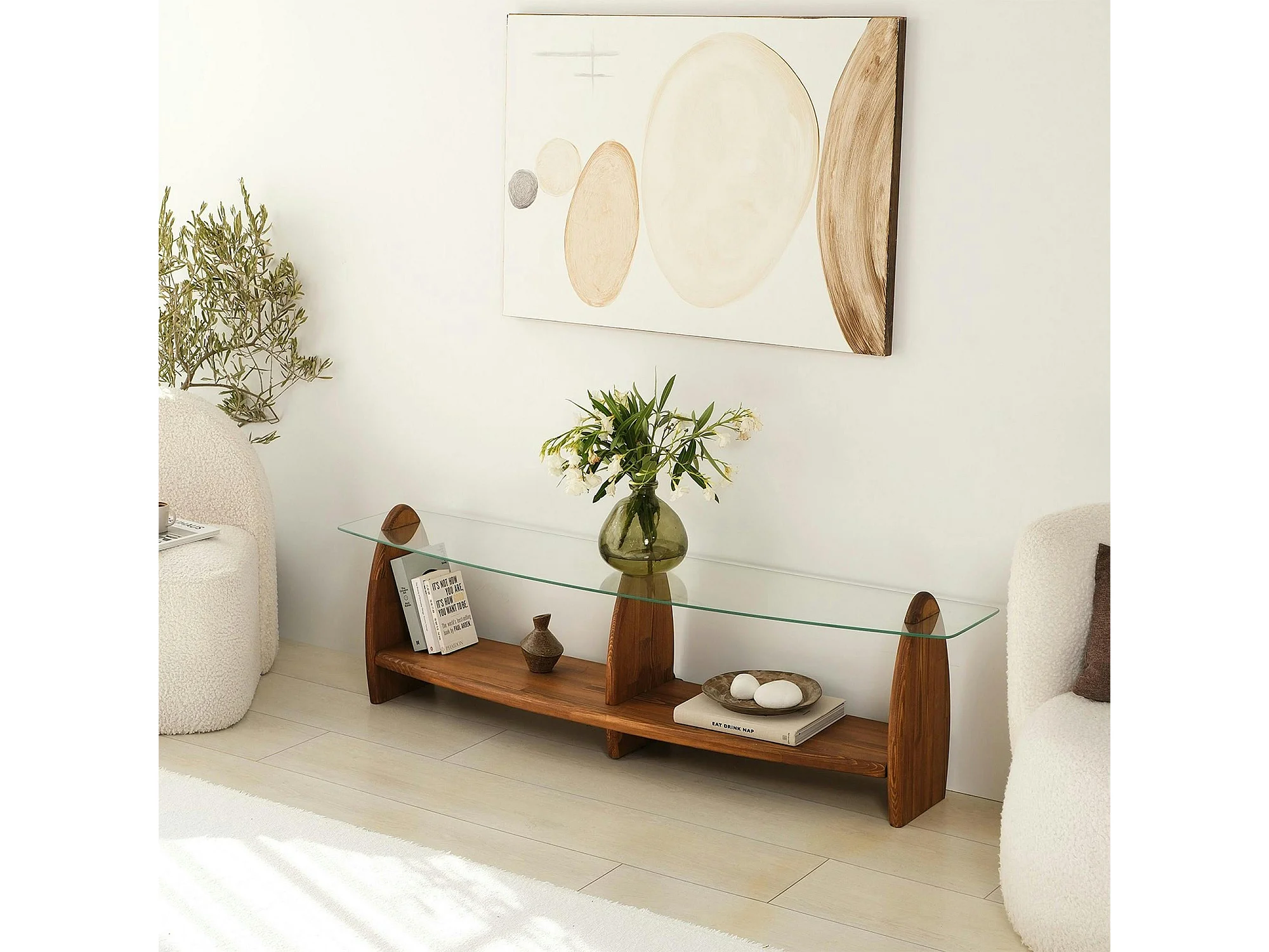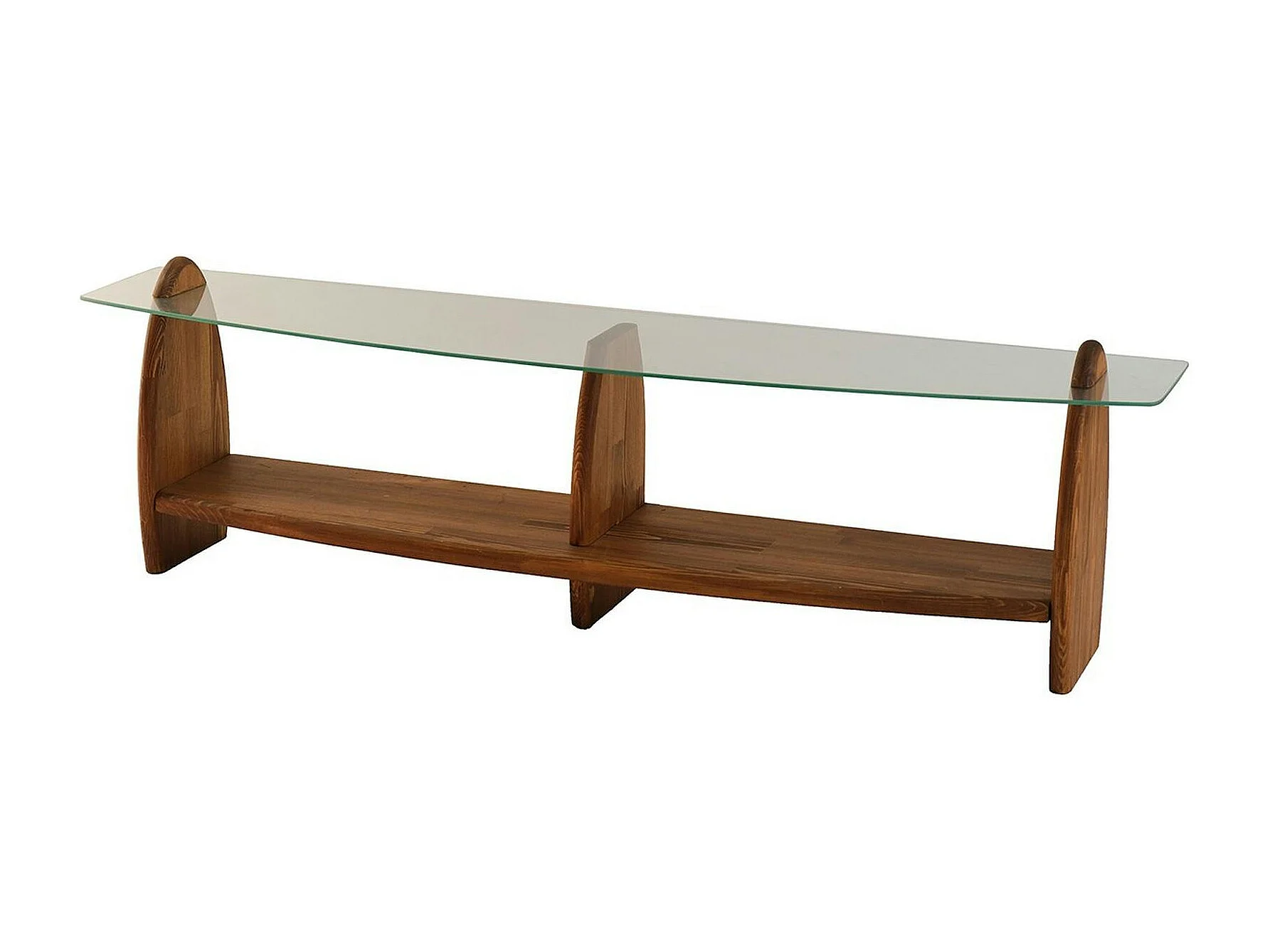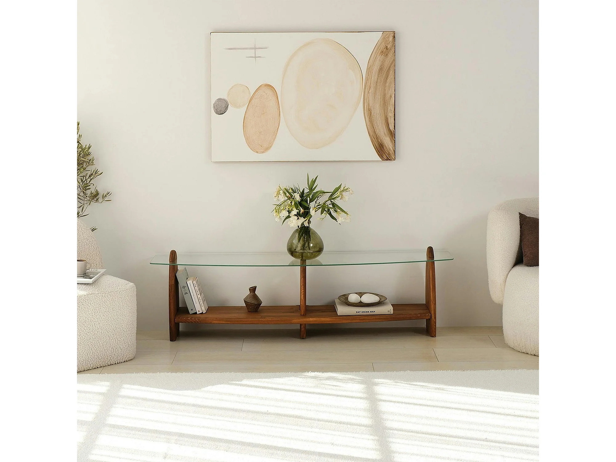Meuble TV bois brun et verre - 2 niches, vintage ANZIO