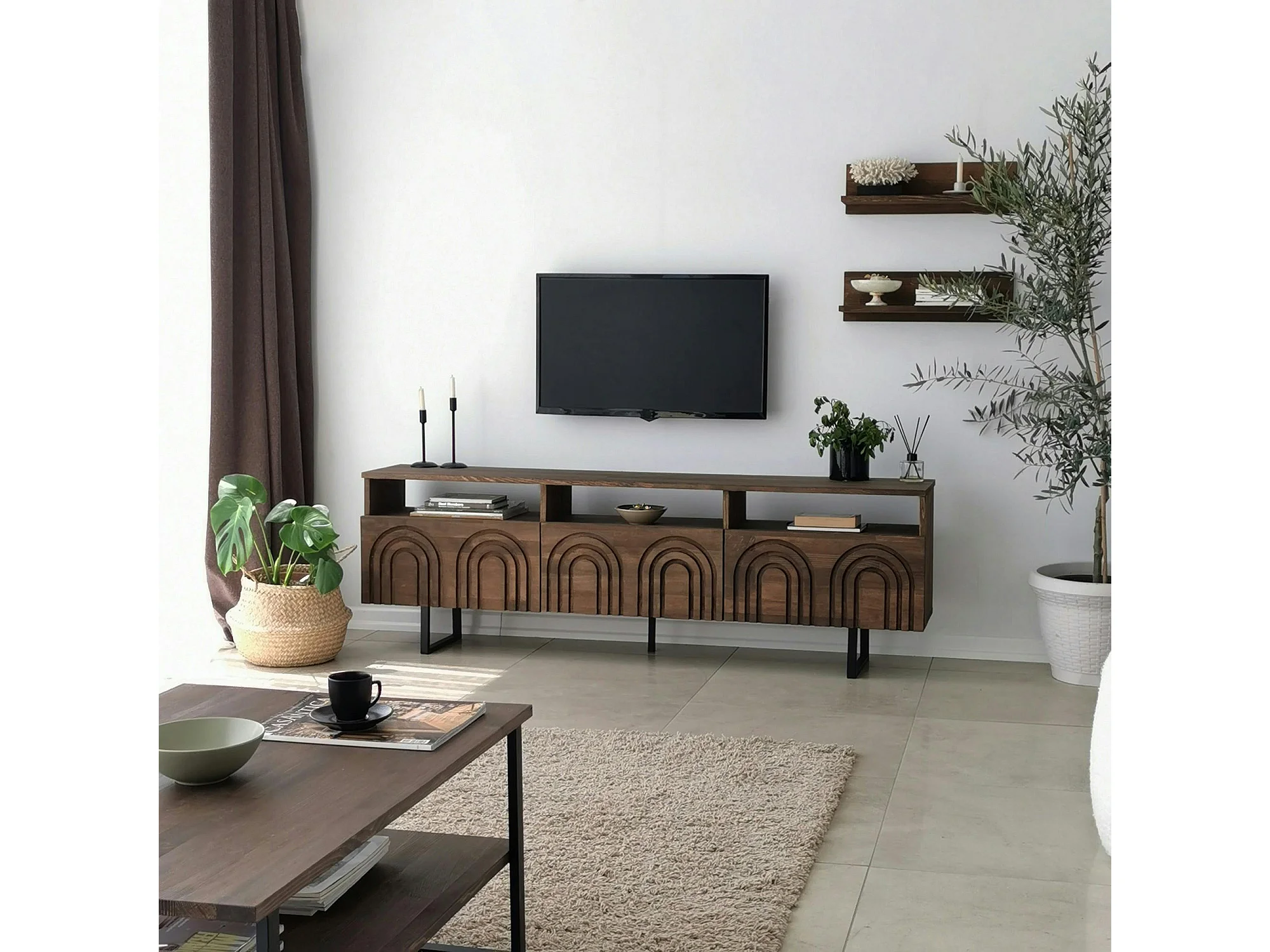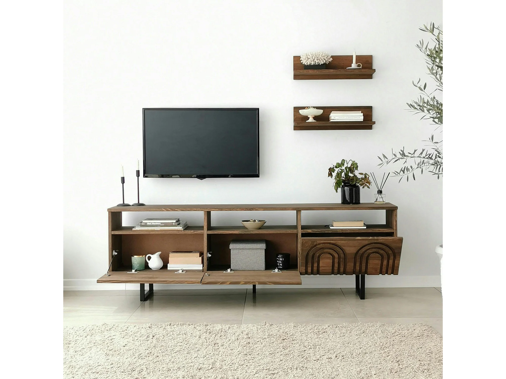 Meuble TV bois brun motif arches avec 2 étagères JACA