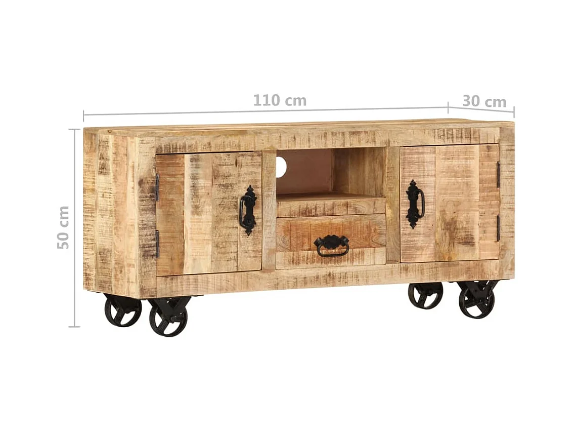 Meuble TV Bois de manguier brut 110x30x50 cm