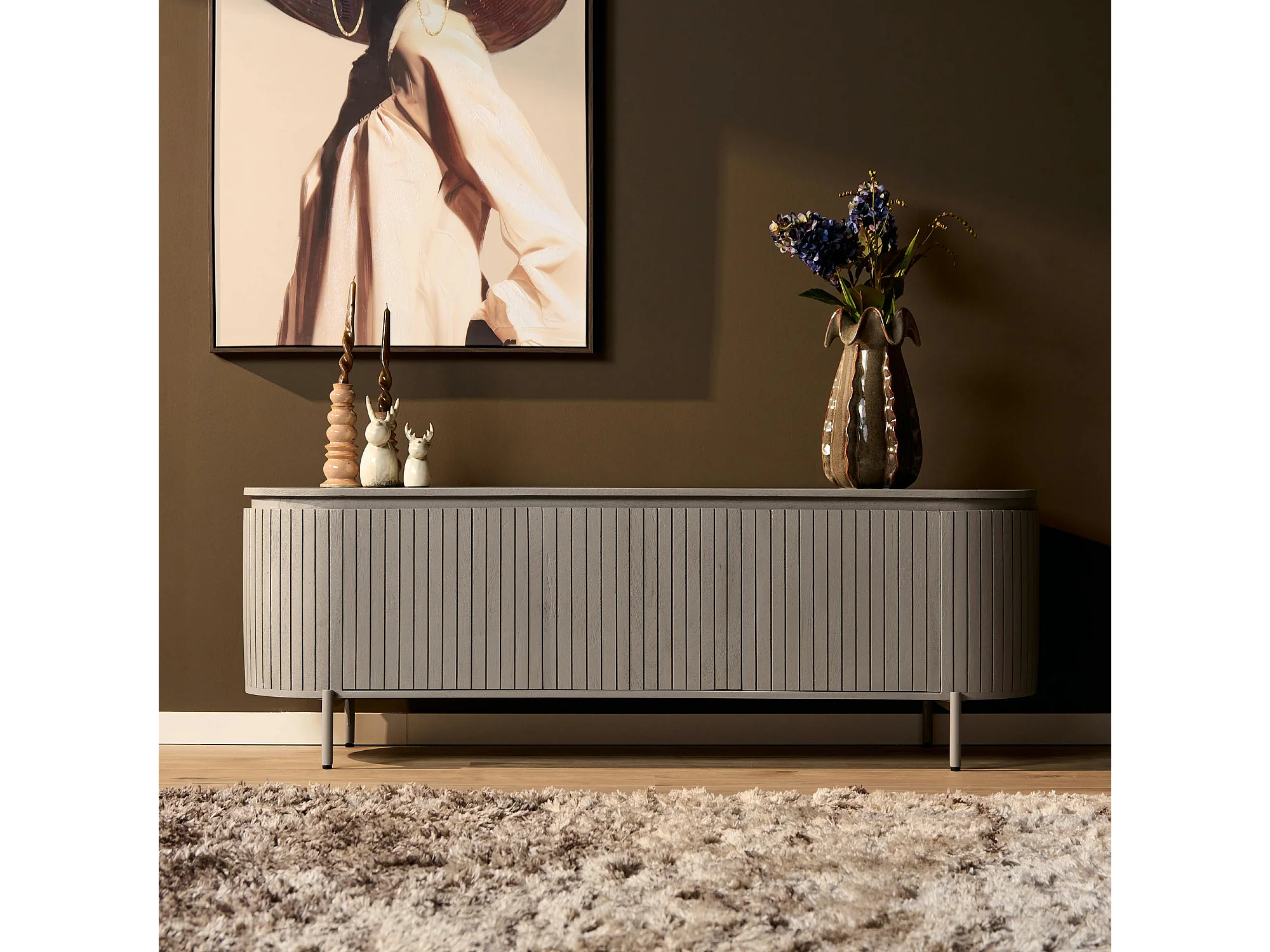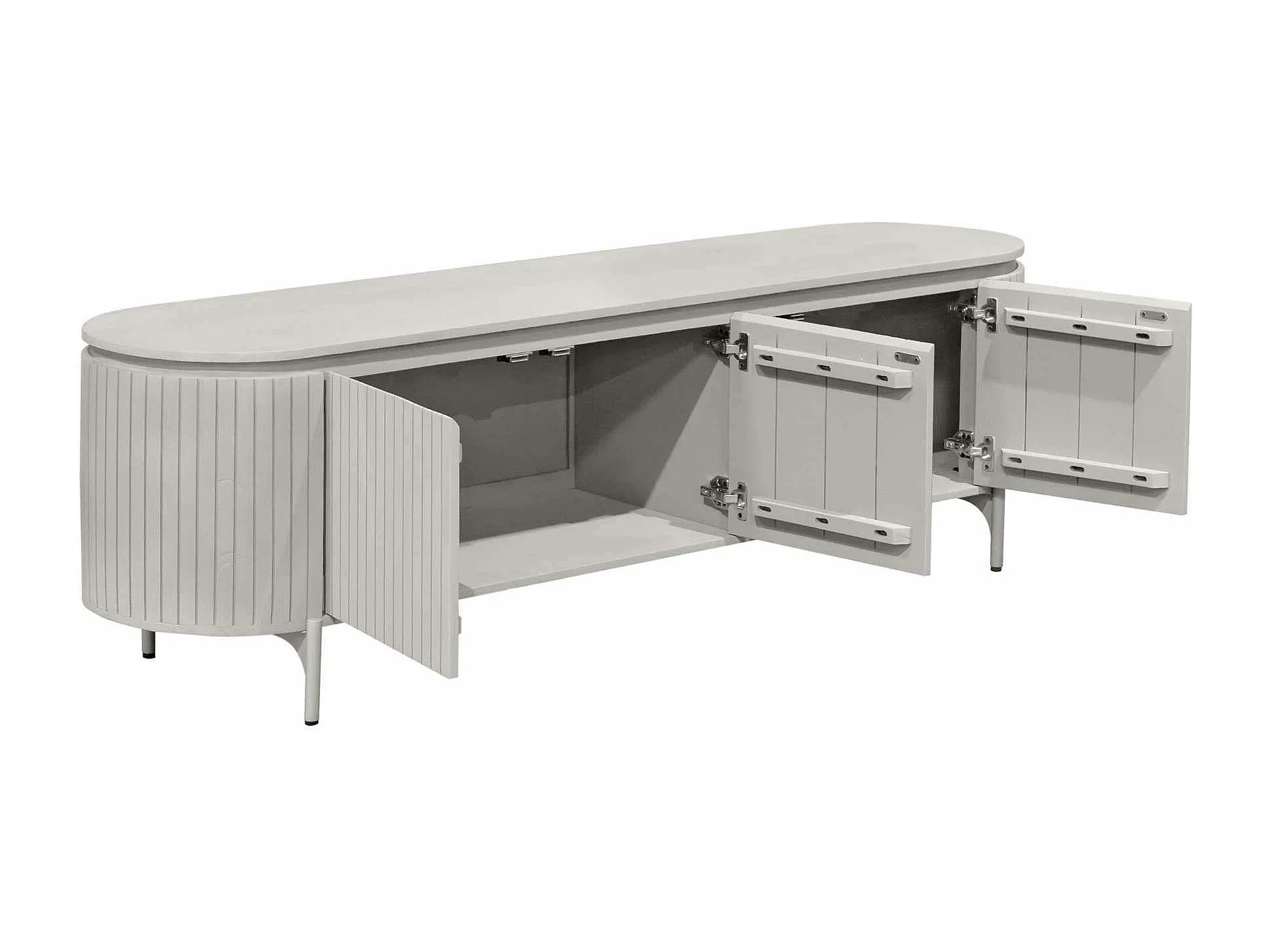 Meuble TV bois gris rainuré ovale 3 portes CALERO