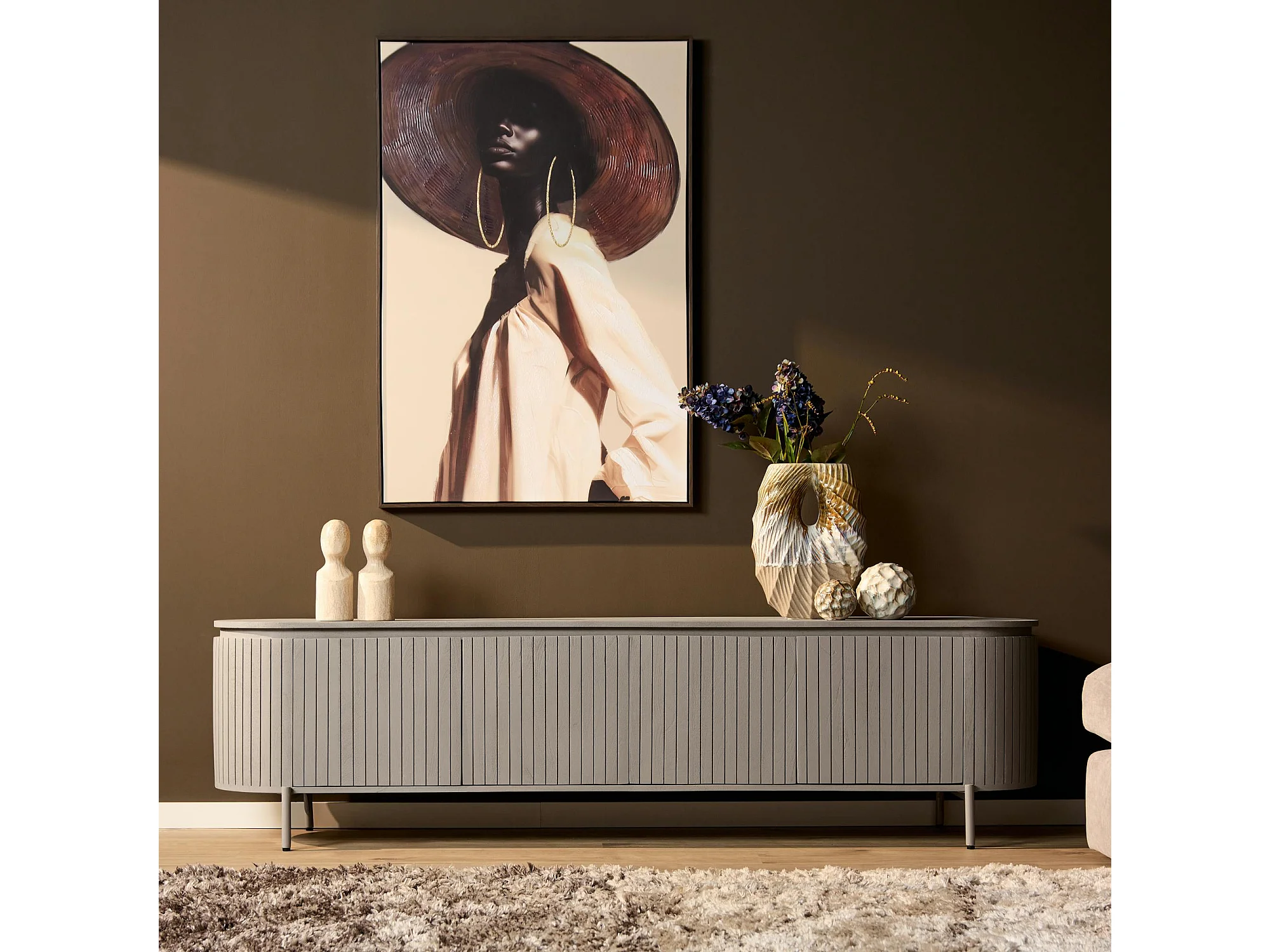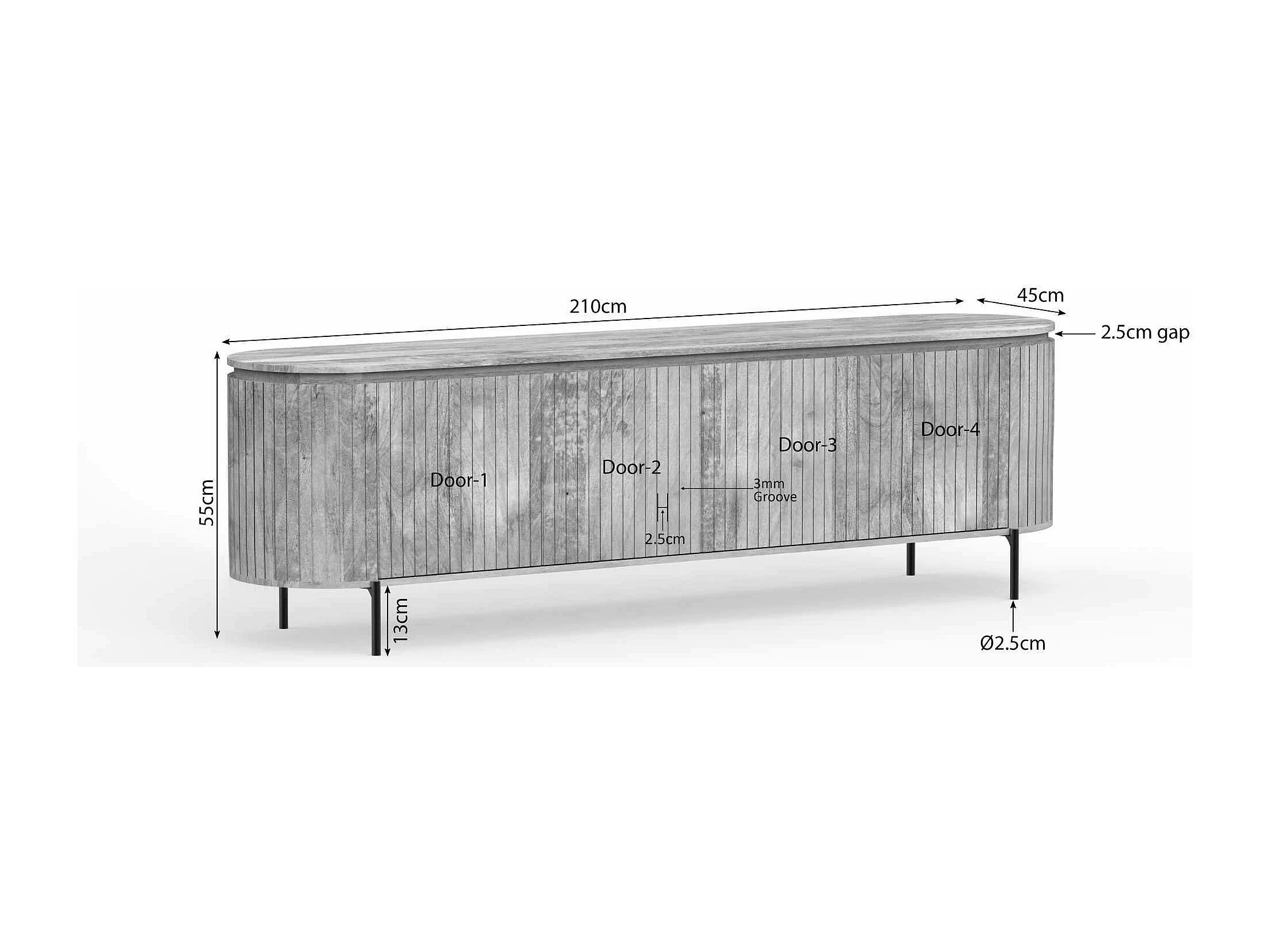 Meuble TV bois gris rainuré ovale 4 portes CALERO