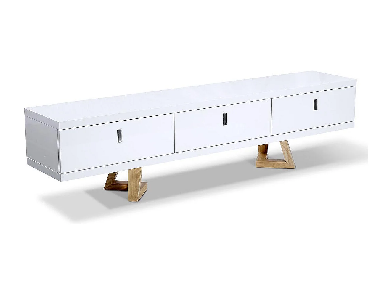 Meuble TV bois/laqué DUNE - Frêne/Blanc