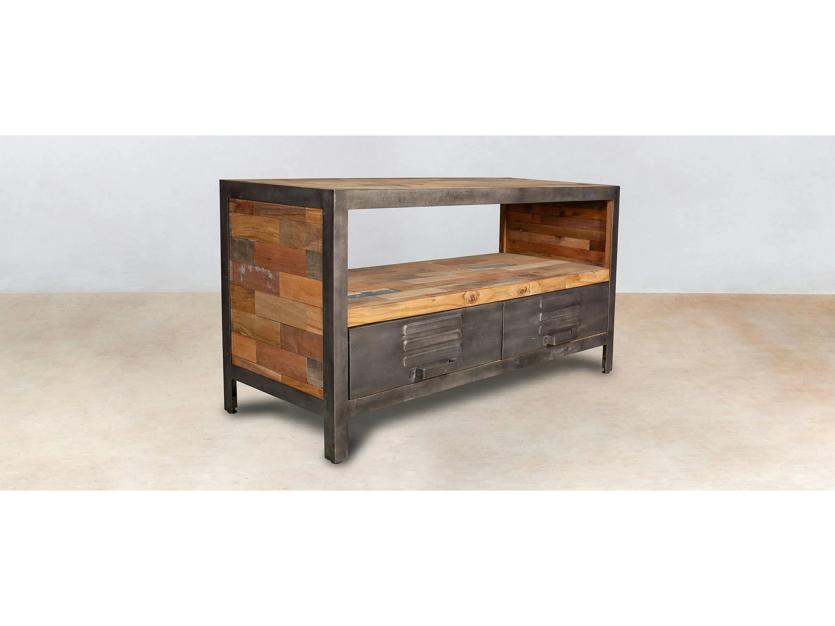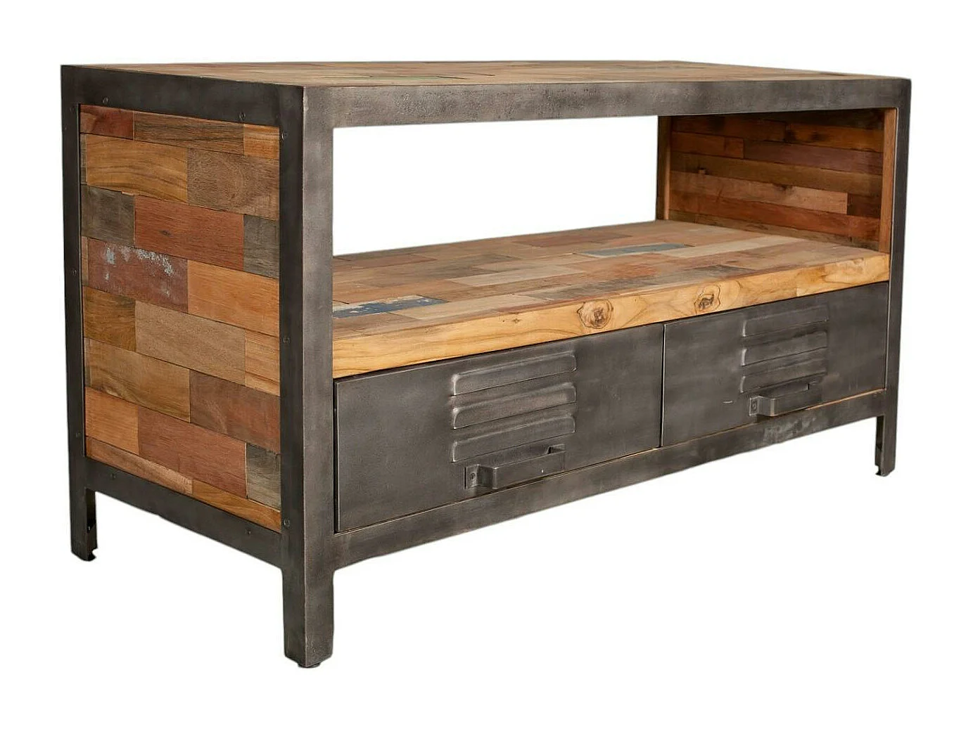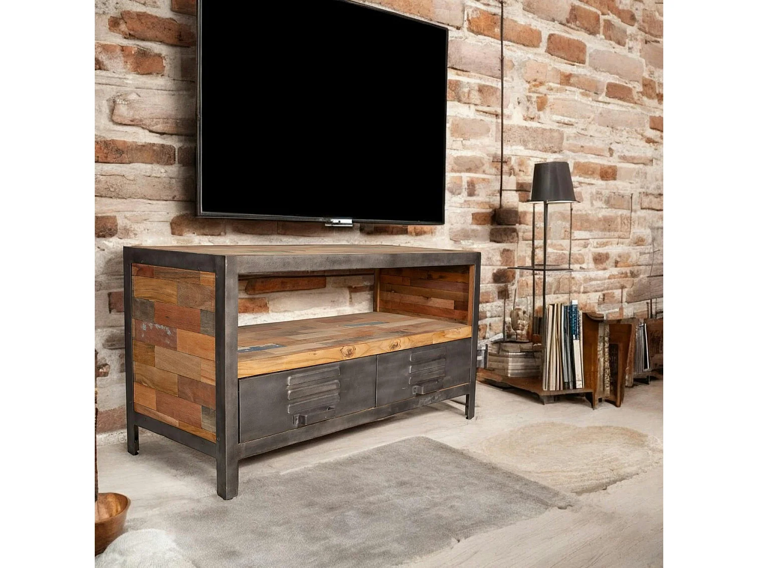 Meuble TV bois métal 2 tiroirs CARAVELLE