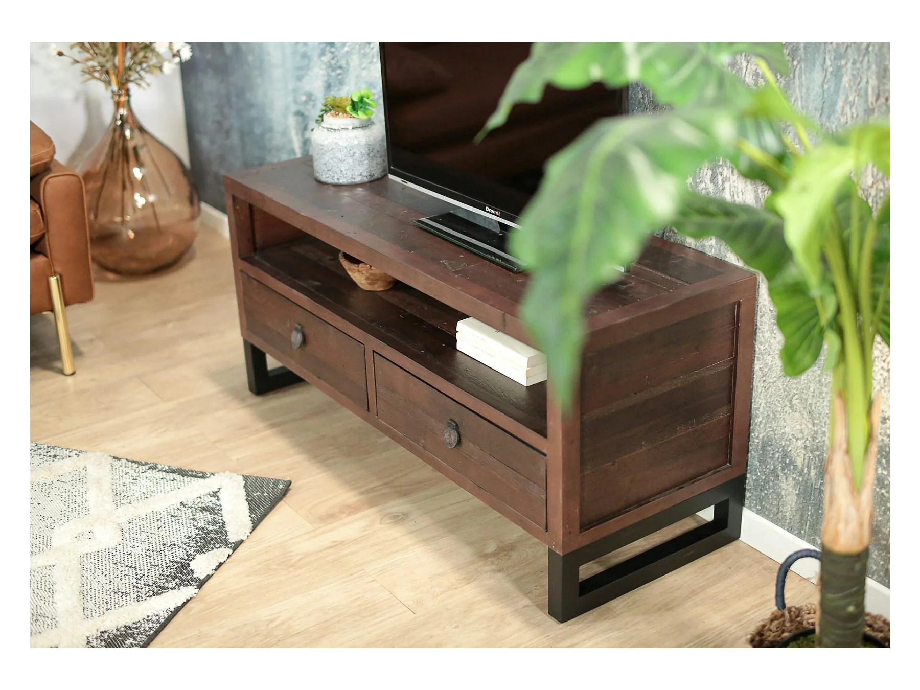 Meuble TV bois brun recyclé 2 tiroirs SAMOA