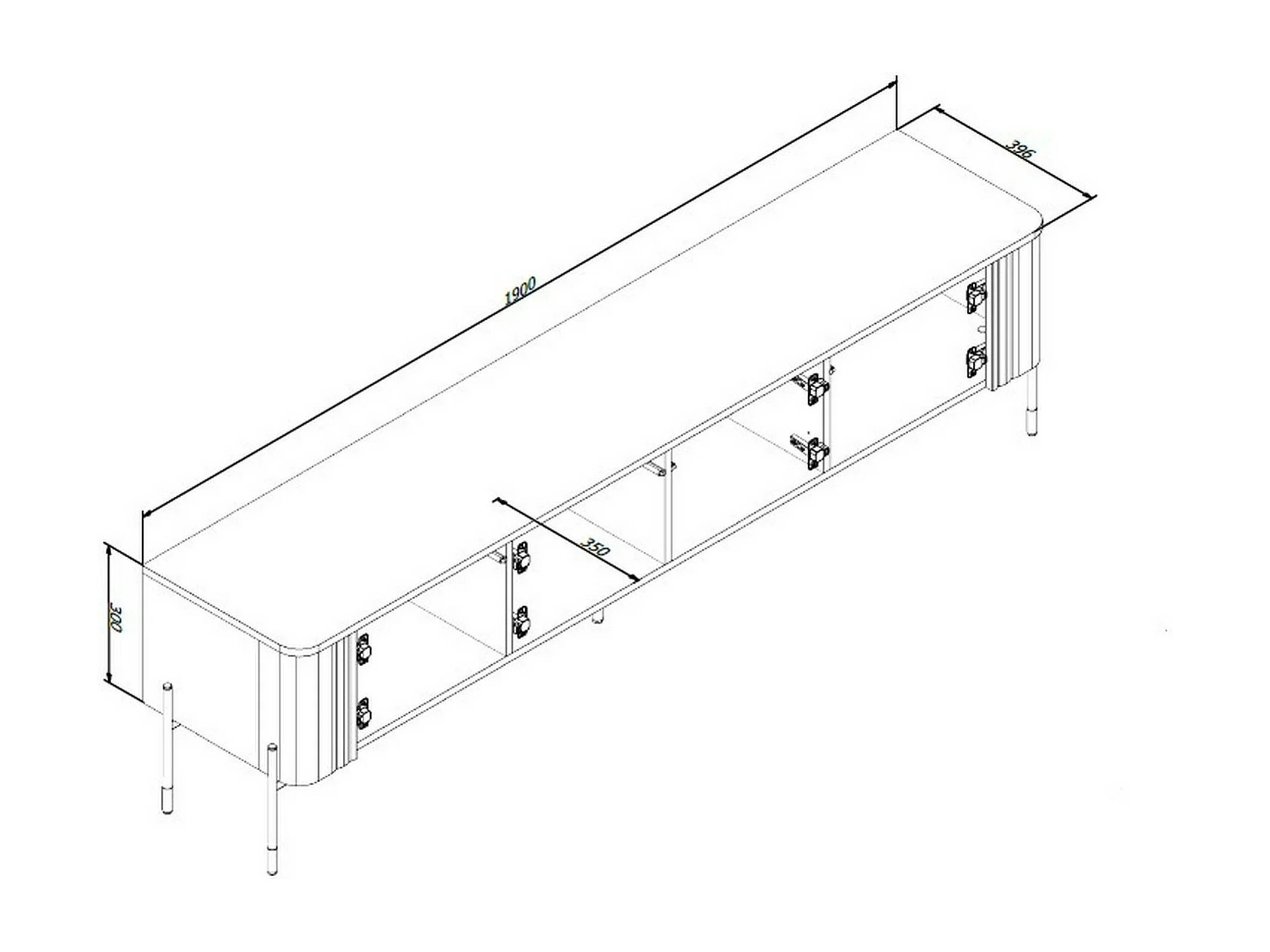 Meuble TV Fiaes, une étagère, 39,6x190x50h cm Noir