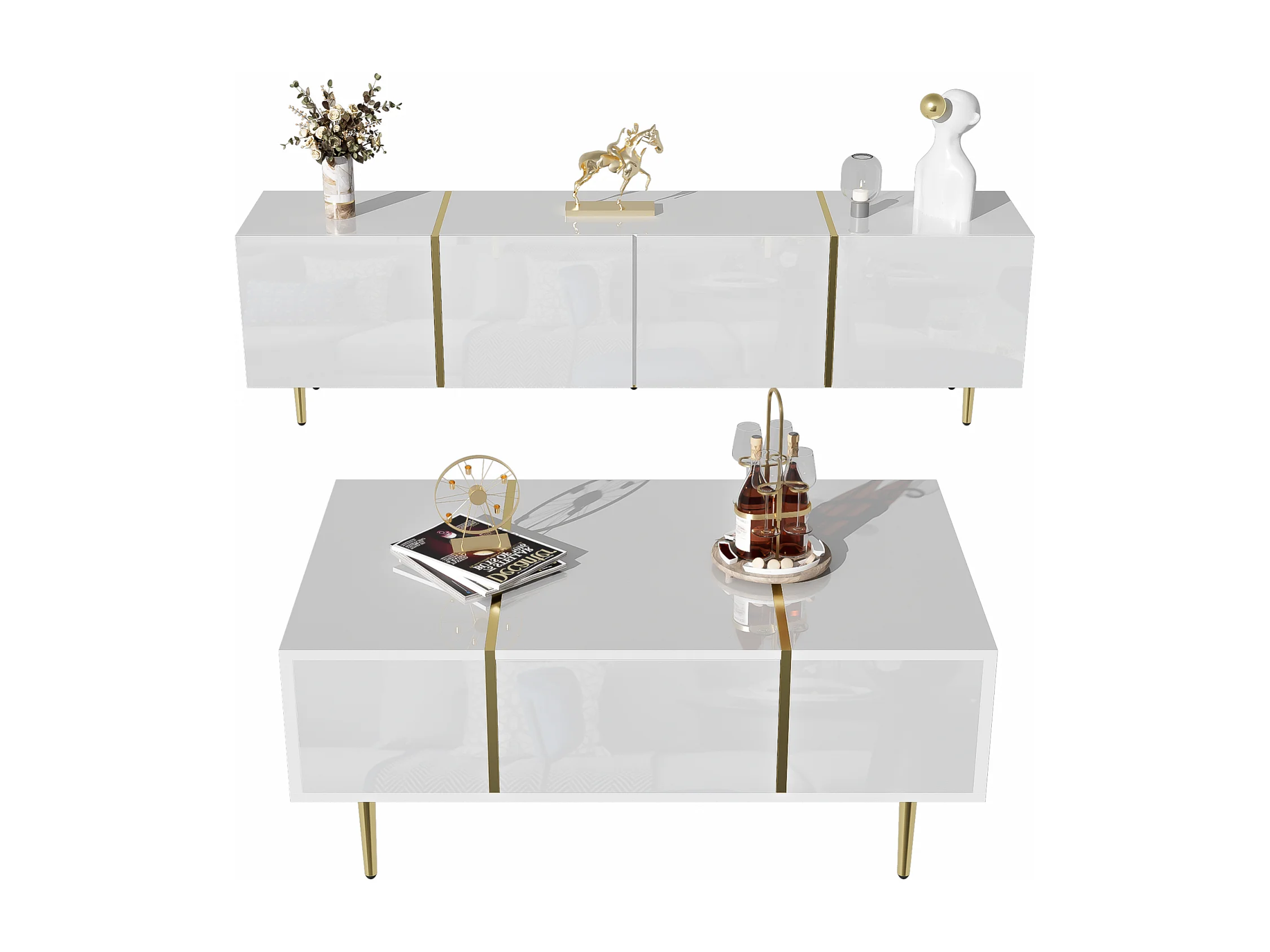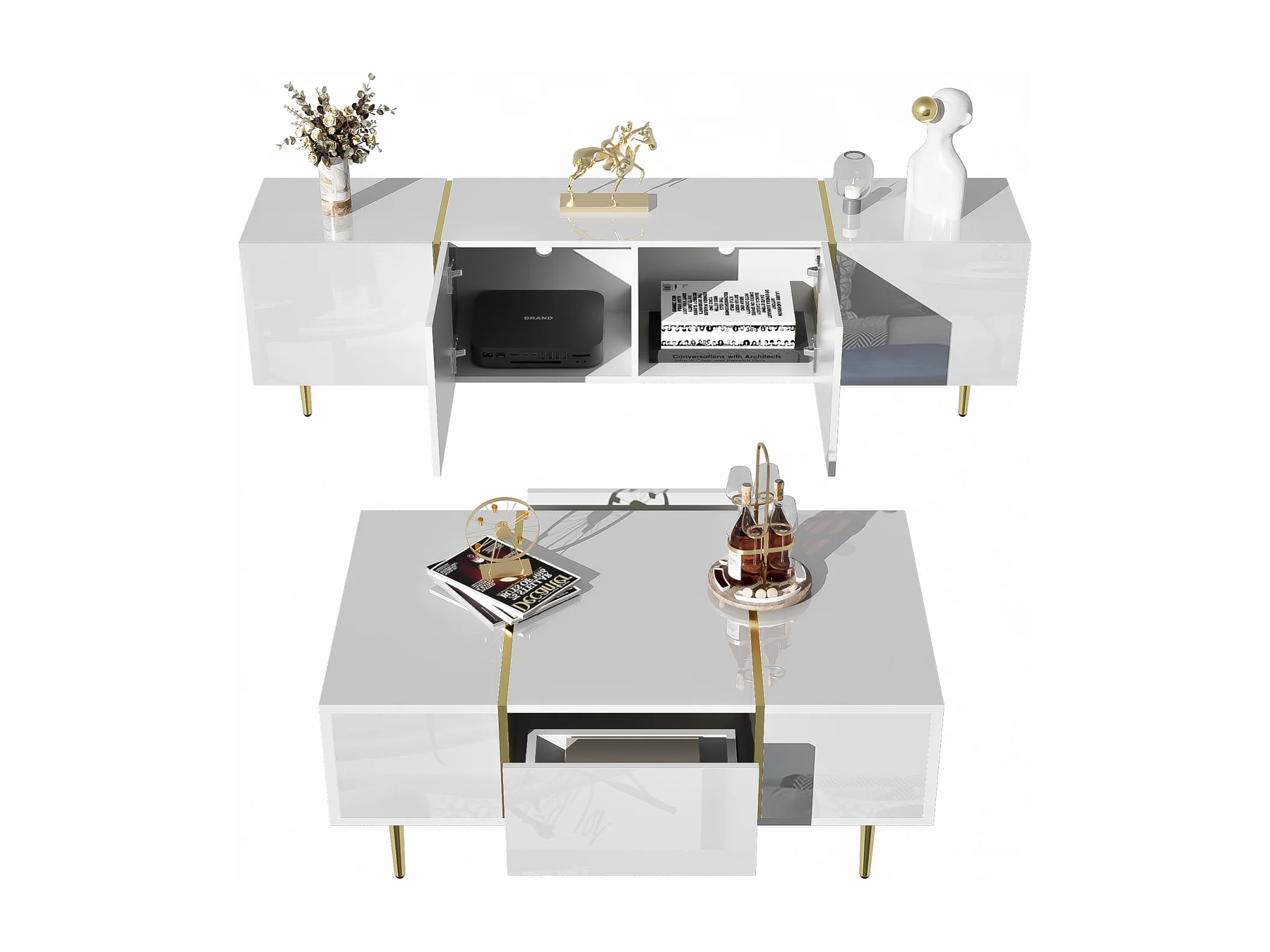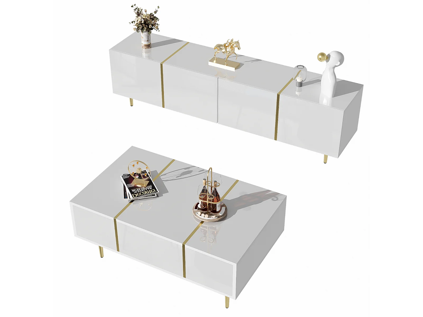 Meuble TV brillance et ensemble de table basse moderne, Armoires de rangement, Blanc