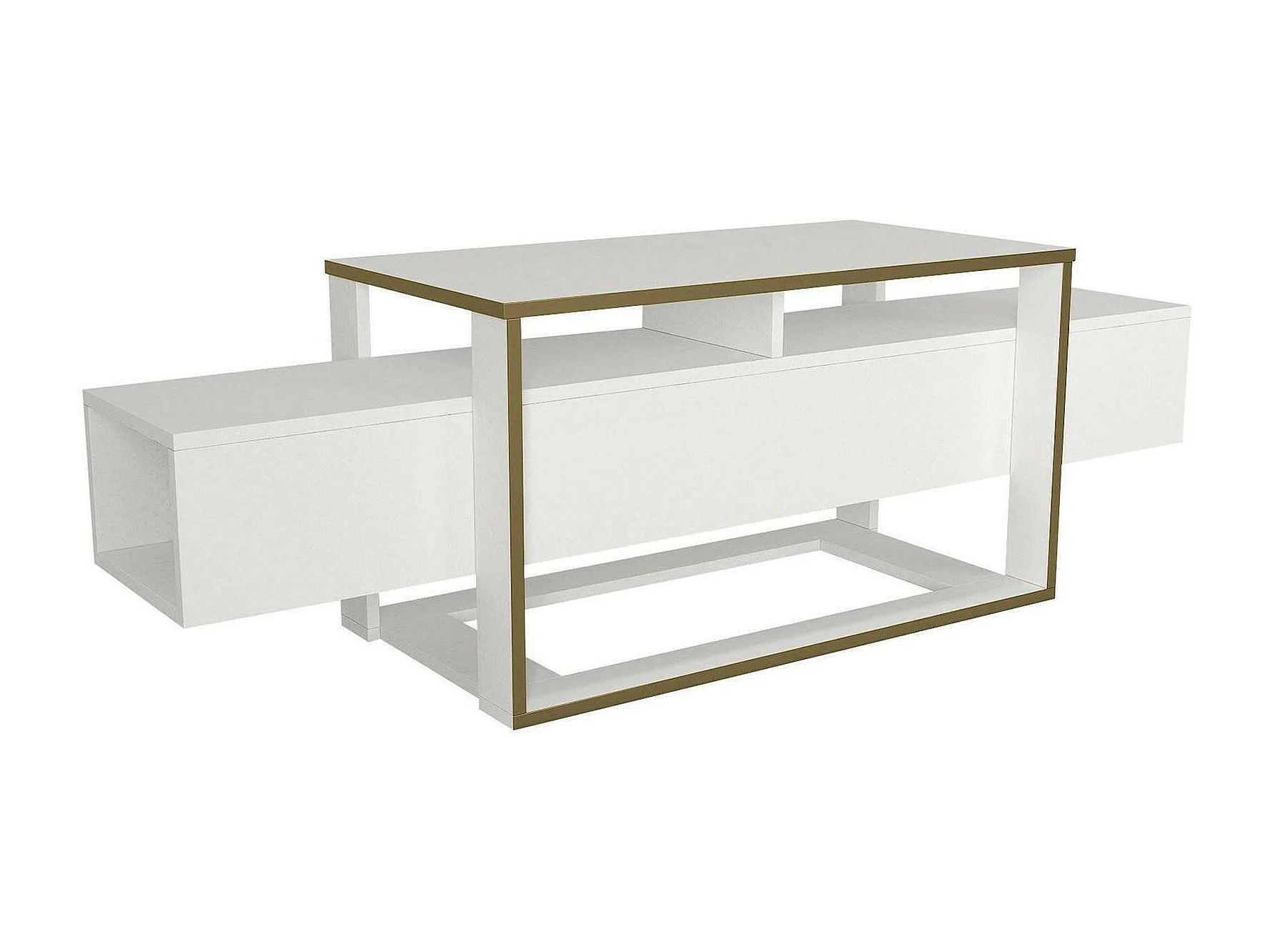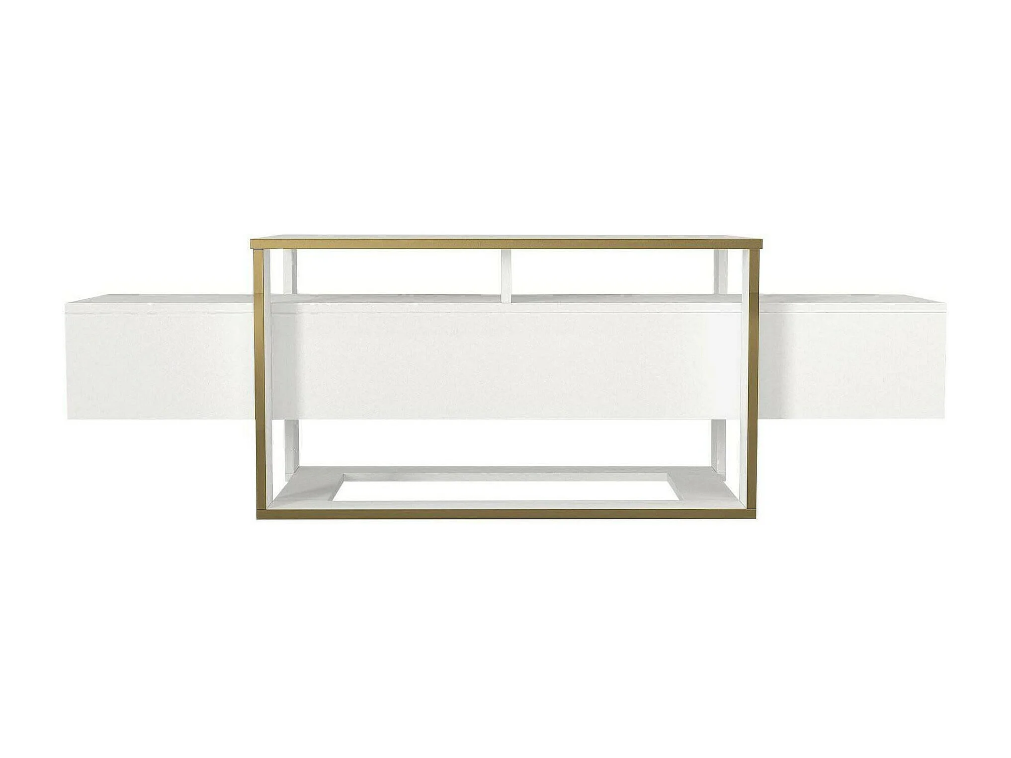 Meuble TV Callisto, Buffet de salon, Armoire basse pour TV, Base murale de rangement, 160x46h50 cm, Blanc et Or