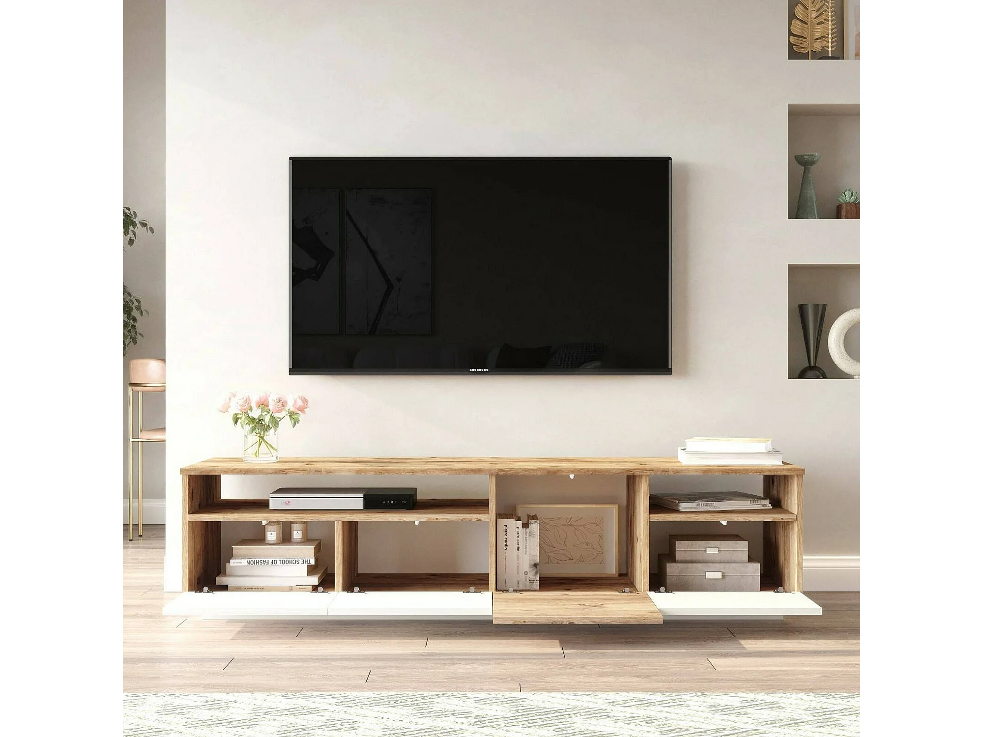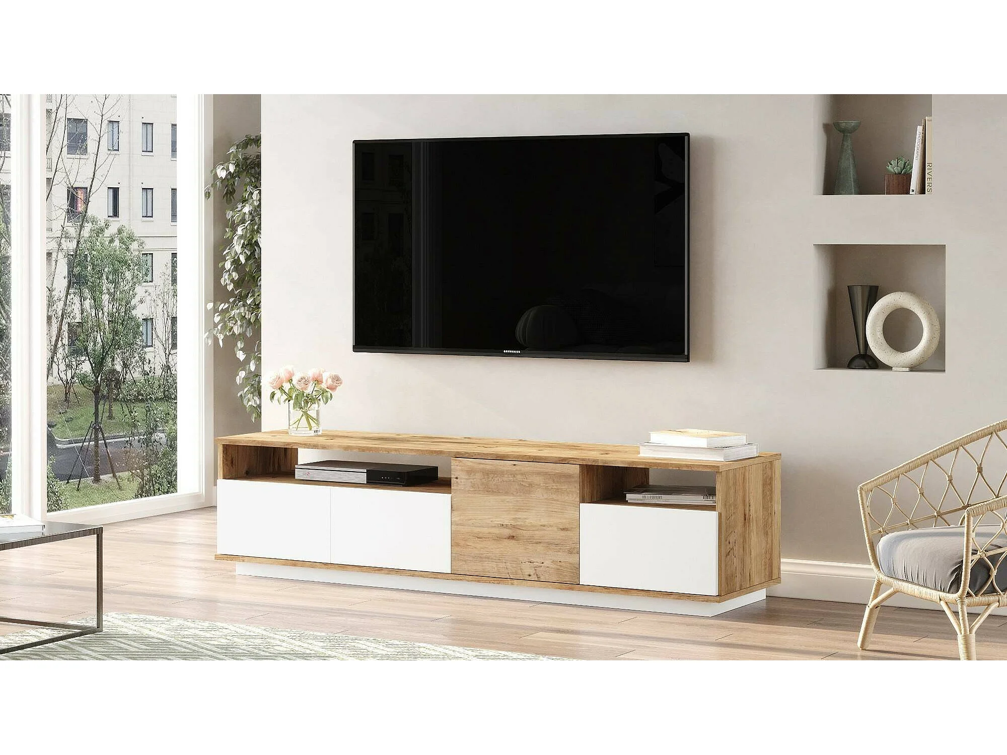 Meuble TV Carme, Buffet de salon, Armoire basse pour TV, Base murale de rangement, 180x45h45 cm, Chêne et Blanc